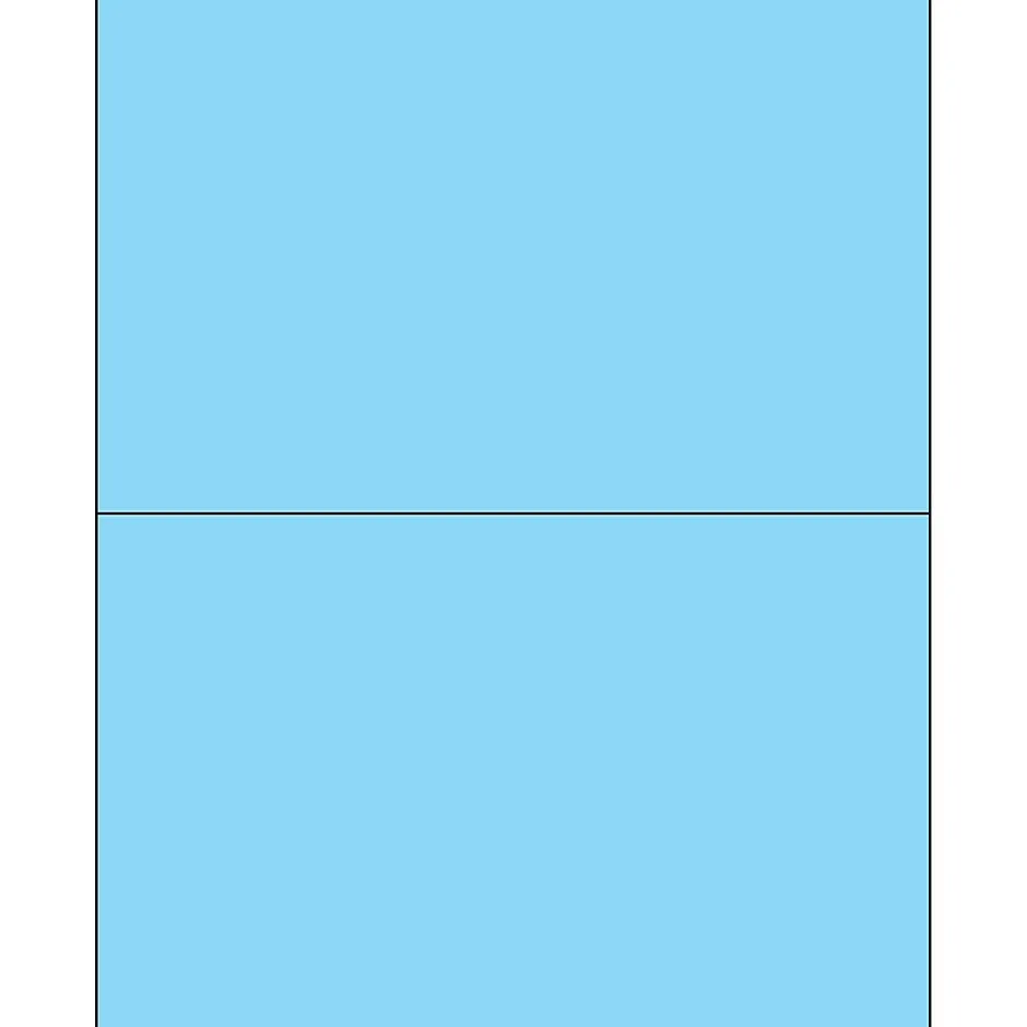 8 1/2″ x 5 1/2″ Fluorescent Pastel Blue Rectangle Laser Labels. Use to create your own product or mailing labels. Labels work with both Laser and ink jet printers. Permanent adhesive. Labels stick to a variety of smooth surfaces including paper, corrugated, plastic, wood, glass and metal.