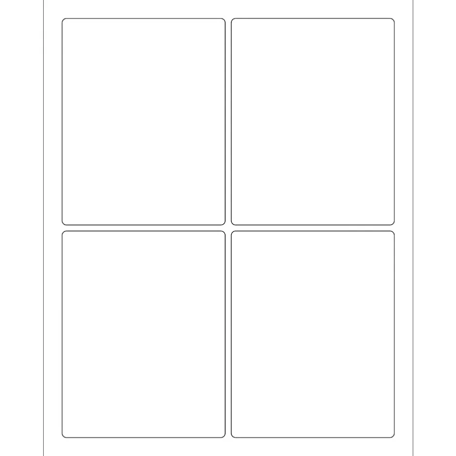 3 3/4 x 4 3/4″ White Rectangle Laser Labels. Use to create your own product or mailing labels. Labels work with both laser and ink jet printers. Permanent adhesive. Labels stick to a variety of smooth surfaces including paper, corrugated, plastic, wood, glass and metal.