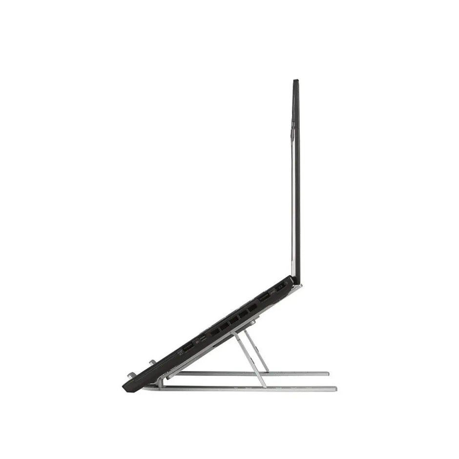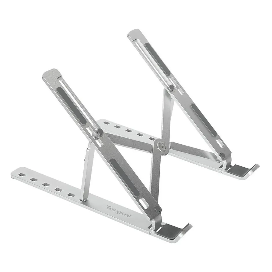 Reduce neck and eye strain with the Targus portable ergonomic laptop/tablet stand that puts your device in an optimal position for daily work. The adjustable design supports six different height options to deliver a comfortable angle for nearly any environment. Stylish and durable, the stand is made of high-quality aluminum with high heat reduction to help prevent your device from overheating. Compact and lightweight, the stand folds flat for easy portability and storage. A bonus gray pouch is also included for convenient carrying.