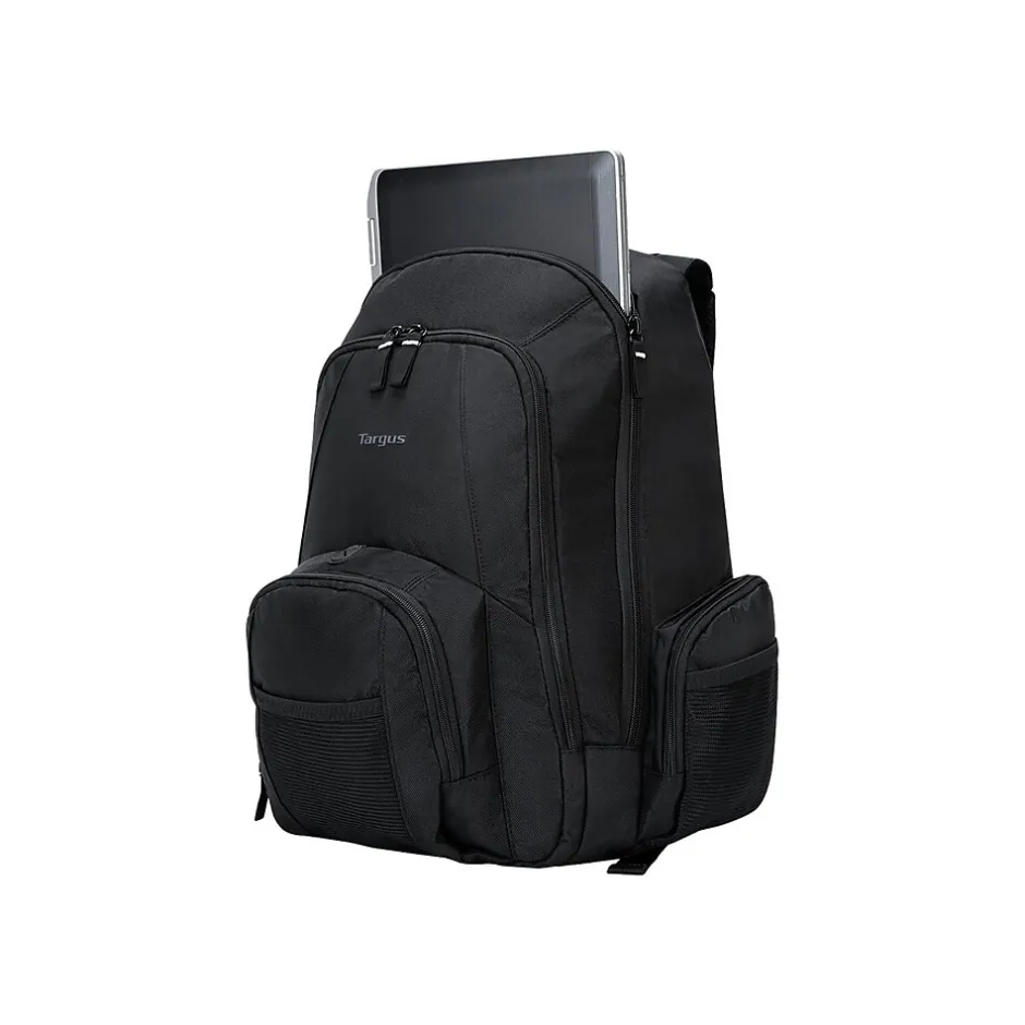 Keep files, assignments and other papers organized with this black backpack. The water bottle holder is conveniently accessible, making it easy to stay hydrated throughout the day, while the mobile phone pouch keeps devices protected and within reach. Featuring a foam padded 16-inch pocket, this backpack is ideal for keeping laptops protected. A front storage area keeps CDs, pens and other items secure thanks to its padded design, while the bottom of this backpack is made from durable PVC material, protecting contents from water damage. This Targus Groove backpack features multiple compartments, making it easy to contain everything you need during the day.