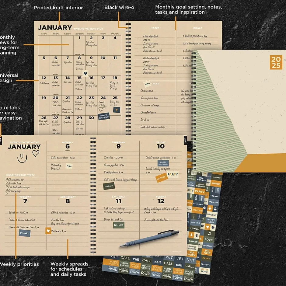 Planning your year is a snap with this large sized 12-month 2025 planner!