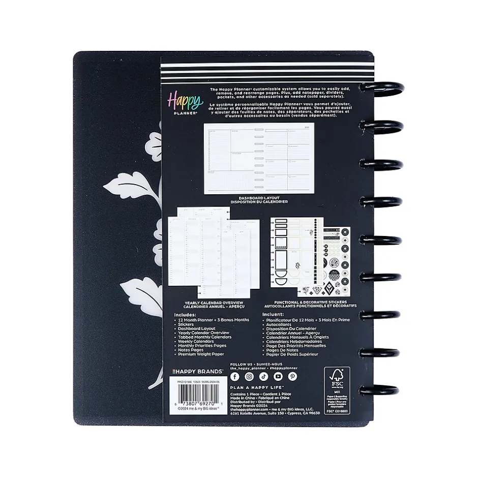 Make time for what you love with this Ink & Ivy classic-size planner from Happy Planner. This design features 12 dividers with a black-and-white color scheme and minimalistic florals. The dashboard layout runs from January 2025 to December 2025. Be you and plan ahead with 12 months of weekly spreads. Add complementary accessories and stickers from Happy Planner, and create your own unique planning system.
