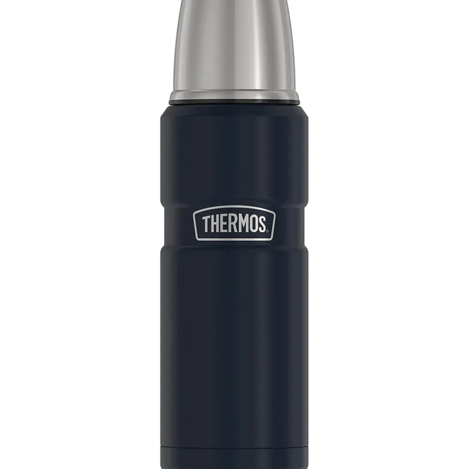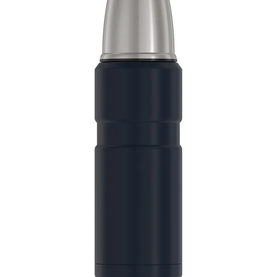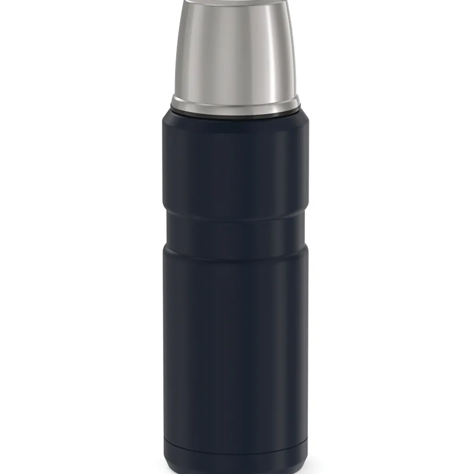 A modern take on a classic, the 16-Oz. Stainless King Stainless Steel Compact Bottle keeps your beverages hot for up to 18 hours and cold for up to 24. It includes a built-in stainless steel cup and a twist and pour stopper which allows you to pour your beverage without removing the stopper completely. The Midnight Blue stainless steel exterior is sweatproof.
