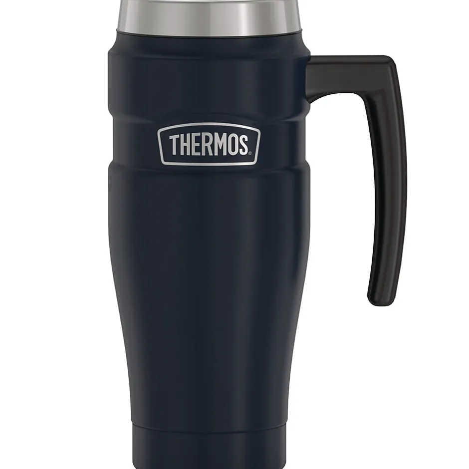 This rough and tumble mug is great for long treks or long road trips—to the wilderness or across town. The perfect travel companion, the 16-Oz. Stainless King Stainless Steel Travel Mug vacuum-insulation is the best way to make sure your morning routine never loses steam. This Midnight Blue travel mug fits in most cup holders, and features a built-in tea hook.