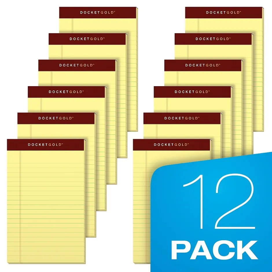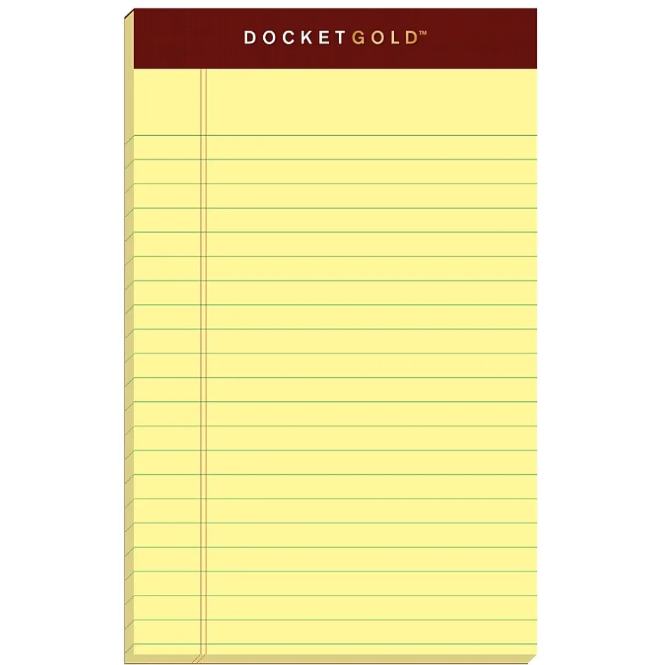 Docket Gold canary rigid-back notepads have a smaller, junior size for portability. Heavyweight paper helps prevent ink from showing through to the other side for better accuracy, less confusion and a professional look. Letr-Trim perforations let pages tear away from the binding easily without ripping the paper.