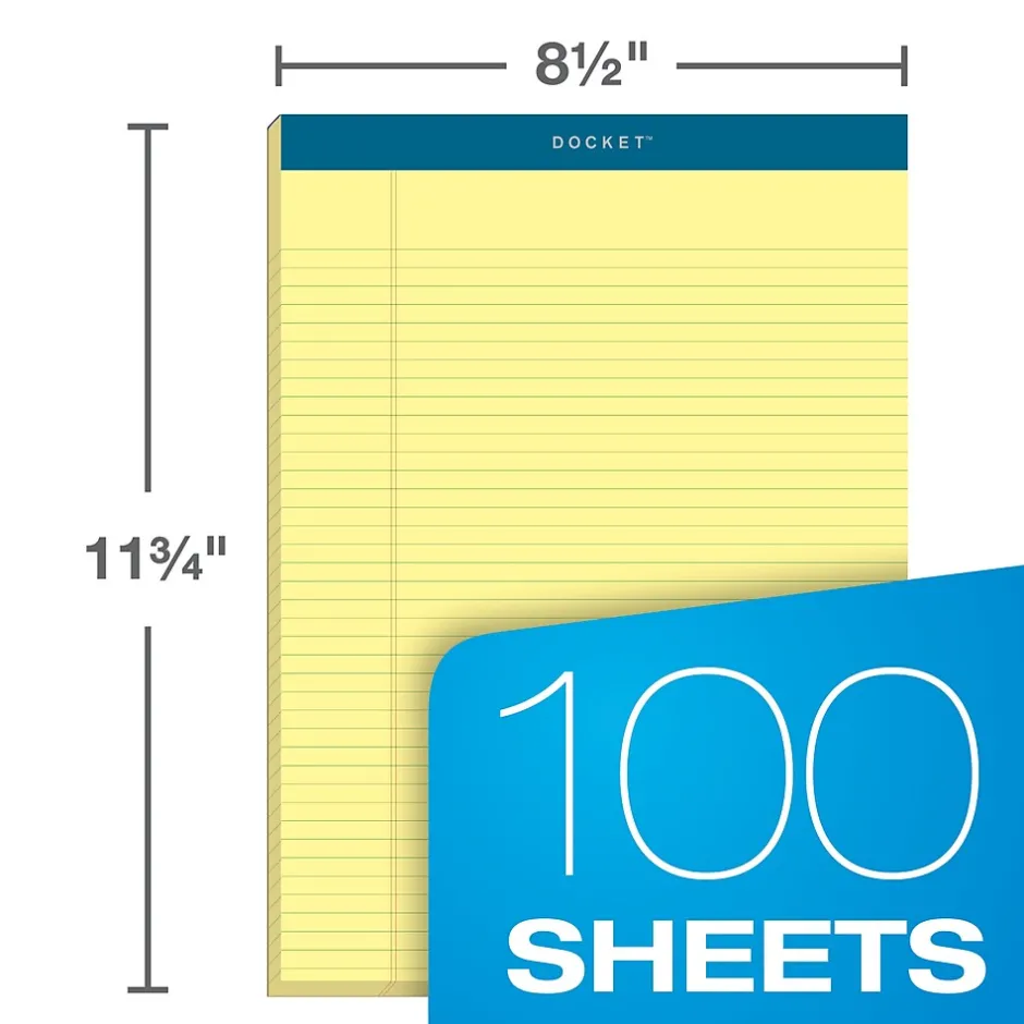 Bring a professional touch to meetings with these canary yellow legal notepads. The narrow-ruled format provides ample space for detailed notes, and the microperforated edges allow clean, rip-free sheet removal. Each notepad features an extra-strong backing, so you can write comfortably even without a desk or table. These TOPS Docket notepads feature canary yellow pages, which help ink and marker stand out for readability.