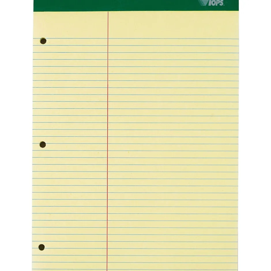 Proudly made in the USA. Twice the amount of sheets. Chipboard back. Letr-Trim® perforated. 3-hole punched. Canary paper. Law rule. 8-1/2″ x 11-3/4″. 100 sheets.