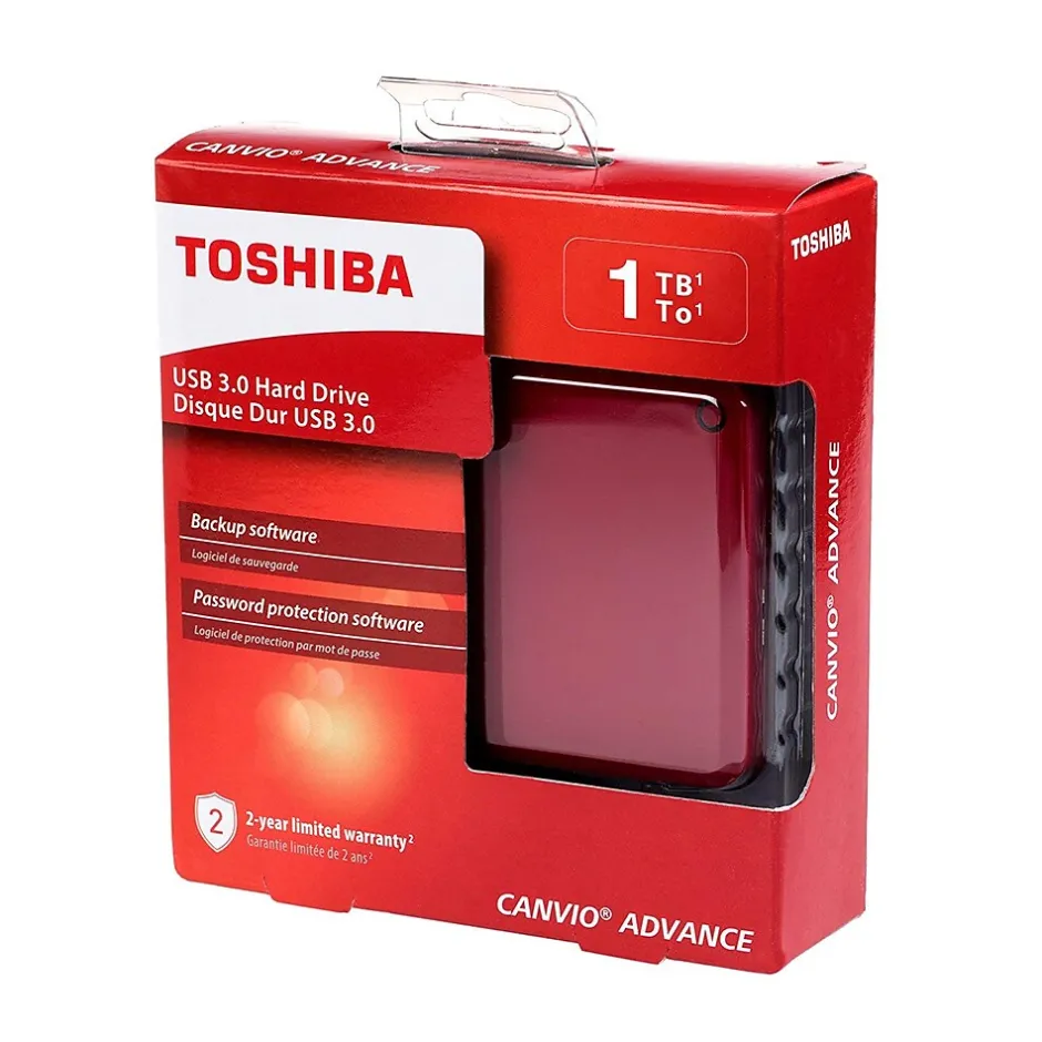 The Canvio Advance portable hard drive allows creators to do what they do best – anywhere their lives take them – offering high storage capacity, 24/7 access to your stored content and the time-tested reliable performance they need. Whenever and wherever creativity strikes, Canvio Advance offers the space to create. The Toshiba Canvio Advance provides a lot of storage so you can store thousands of pictures, videos, music, or a variety of large files on a small 2.5″ portable drive. The Toshiba Canvio Advance features a minimalist design as well as clean edges, a sleek, high-gloss surface, and color options to inspire you – it’s your life, your style, your speed. Keep your files safe and secure with features such as password protection and scheduled backup. Work at the speed of inspiration with the lightning fast transfer speeds of Canvio Advance. With USB 3.0 you’ll be able to transfer and backup files on the go while powering the drive through your laptop’s USB connection. These durable external hard drives are built to Toshiba’s world-class quality standards. Access all of your stored content 24/7 easily from the Canvio Advance hard drive.