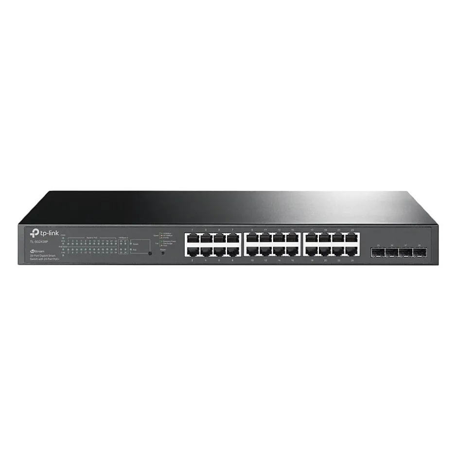 - Smart switch with 24 x gigabit PoE+ ports and 4 x gigabit SFP slots provides high-speed connections