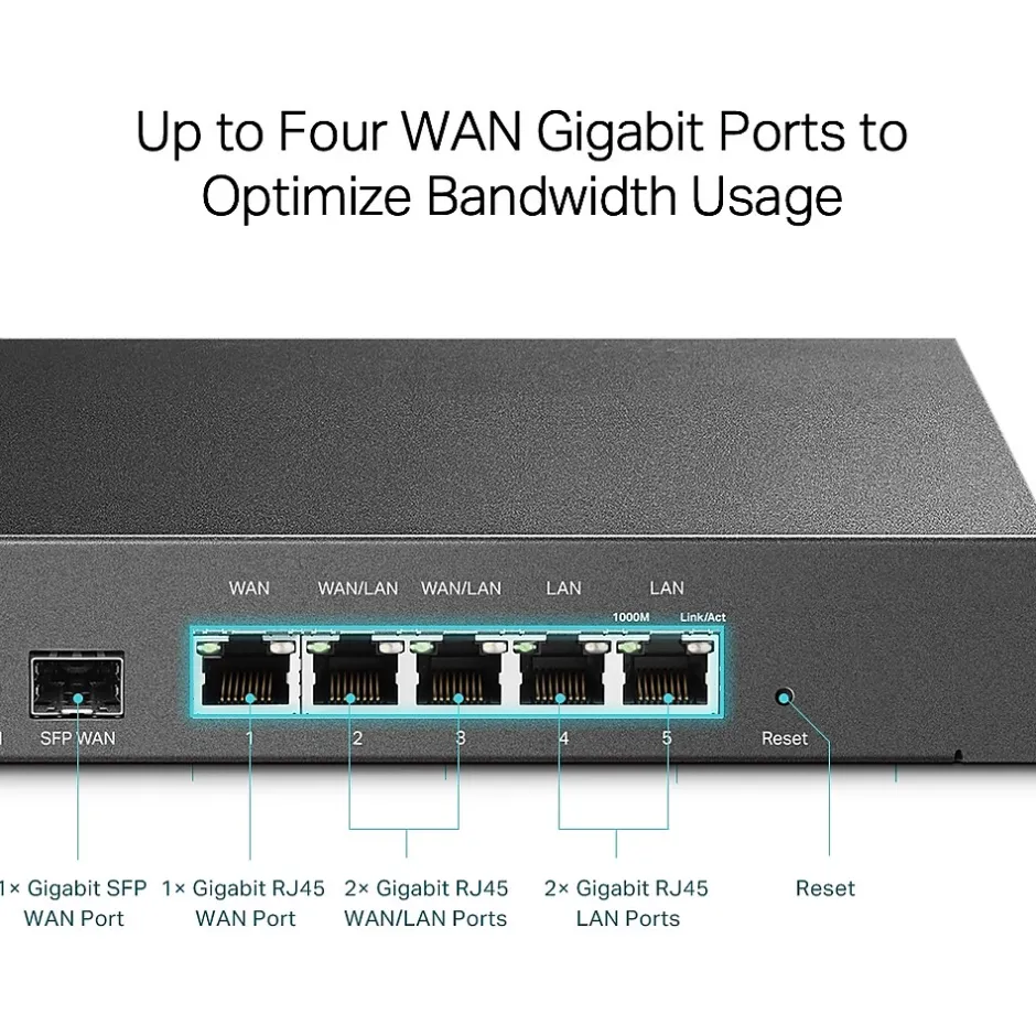 - Total data transfer rate: 6Gbps (1Gbps per SFP WAN port, 1Gbps per RJ45 WAN port, 1Gbps per each of two RJ45 WAN/LAN ports and 1Gbps per each of two LAN ports)