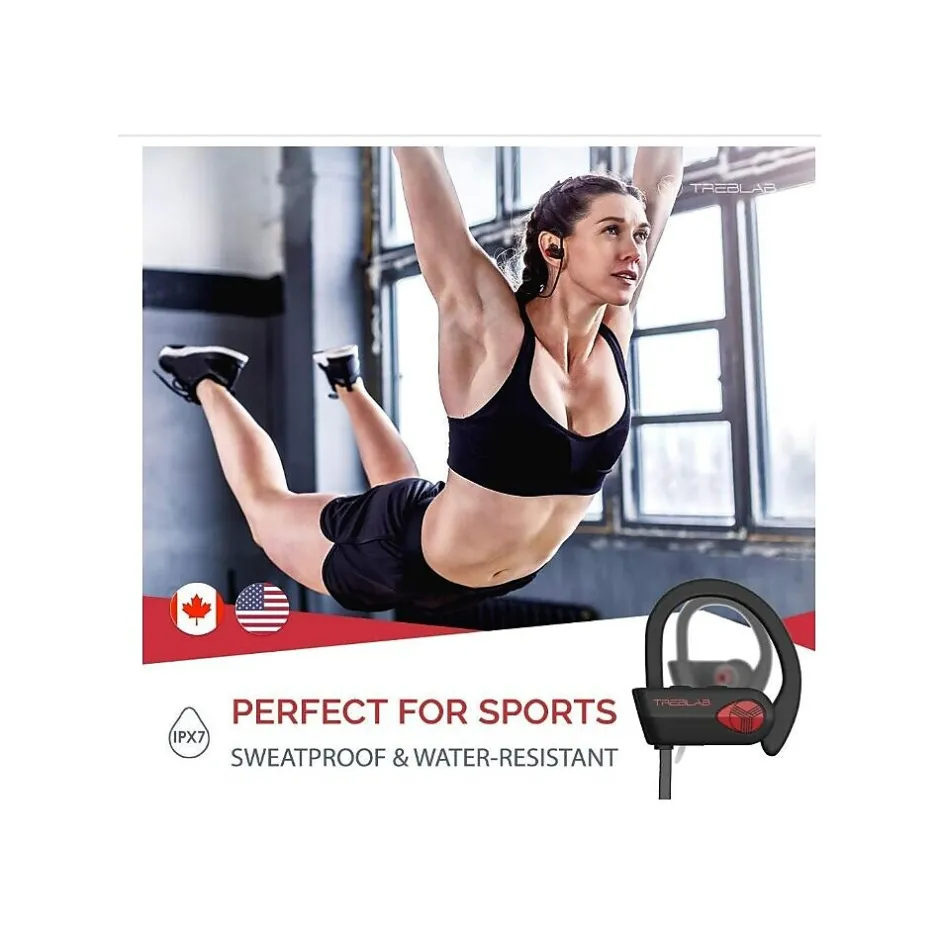 Our Treblab XR500 wireless earbuds use latest Bluetooth 4.1 CSR technology and most advanced components. Enjoy unparalleled quality of sound with tight bass and highs that tingle your hearing senses. Whether running, biking, training hard in the gym, or doing any kind of physical activity, our IPX4 SWEAT-PROOF sports Bluetooth earbuds feel great to wear and will never fall out