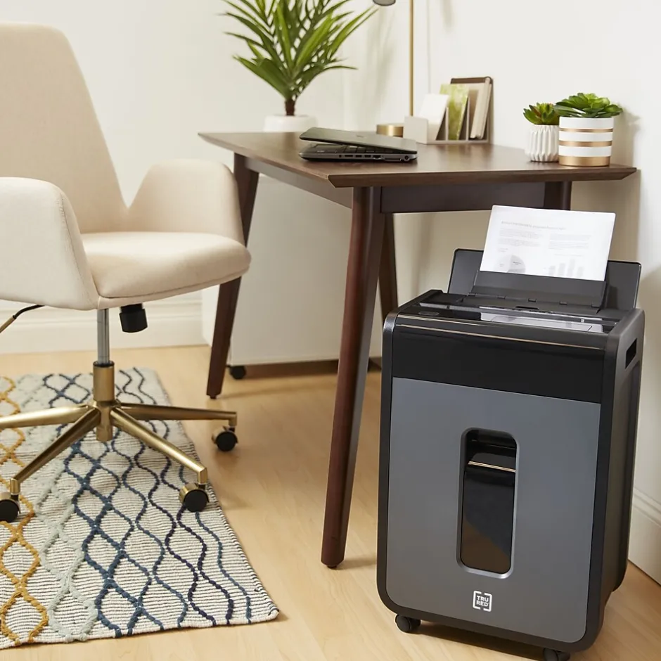 Today’s demanding data security needs call for a shredder that is just as demanding. The TRU RED™ 100-Sheet Micro-Cut Autofeed Commercial Shredder gives you both performance and piece of mind. Featuring a convenient Auto-Feed, this shredder can quickly reduce a stack of standard size documents to 4mm x 12mm particles. Easy to read LED indicators allow users to multitask, monitoring the shredder with a glance. TRU RED™: Built for today’s office with the experience you have come to expect.