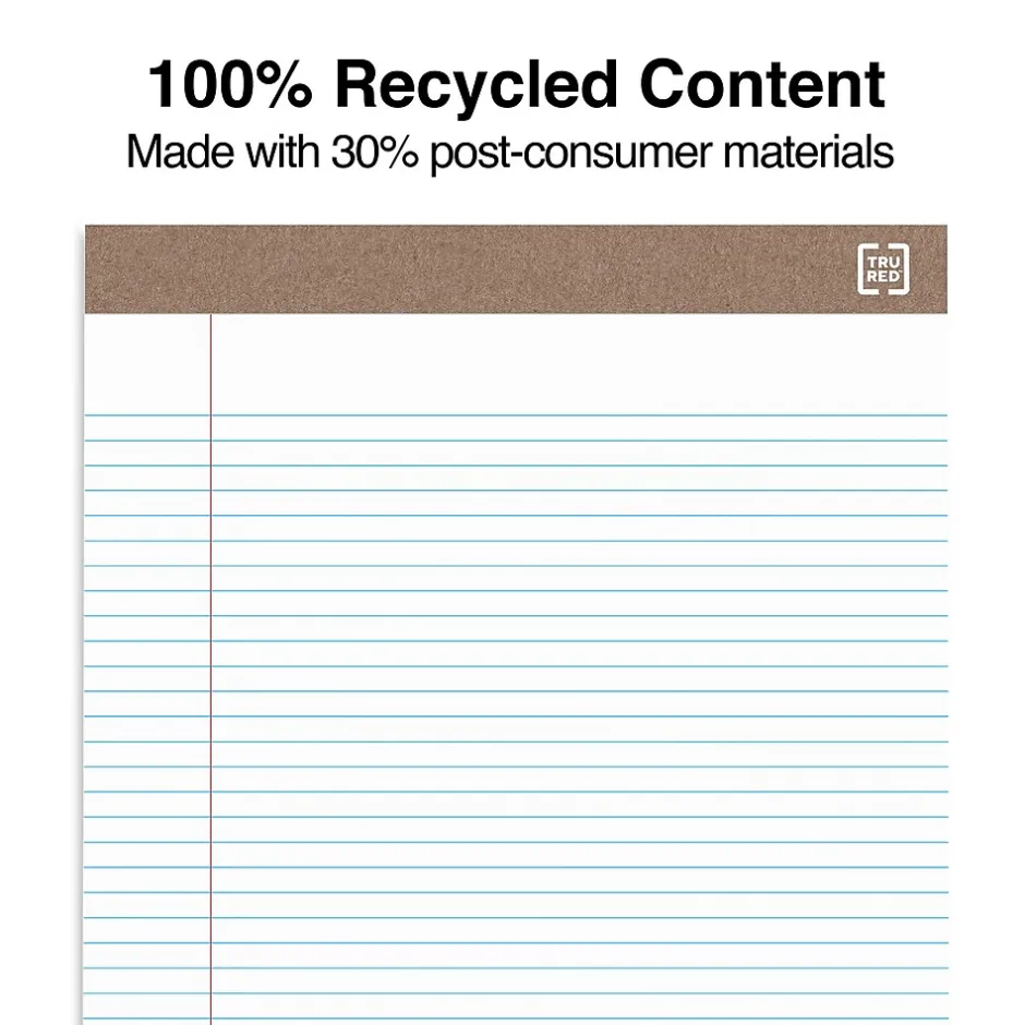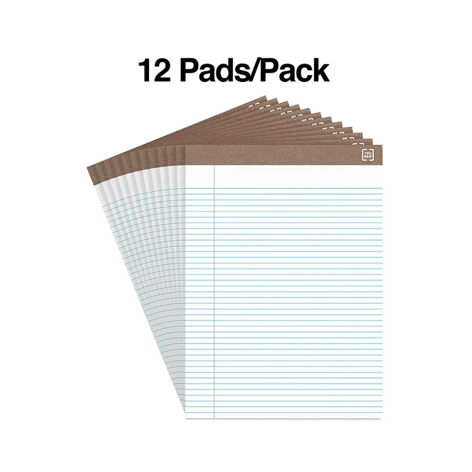 Record your thoughts, plans, and ideas on this 50-sheet ruled notepad. Narrow ruling on each page lets you write more to save space, while the top-bound construction makes it simple to flip through pages. The useful perforations allow effortless sheet removal. This TRU RED™ 8.5 x 11.75-inch white narrow ruled notepad comes in a pack of 12 for classroom or conference use.