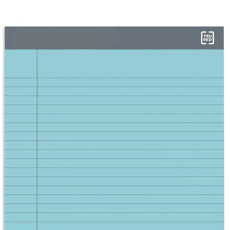 Get a reliable paper supply with these 50-sheet medium-weight ruled notepads. Convenient perforations let you remove sheets easily, while the top binding provides quick access to pages and information. The wide ruling helps you write within the lines for easy readability. These TRU RED 8.5 x 11.75-inch pastel medium-weight ruled notepads feature 18-pound paper and a 60-point backer for sturdiness and reliable performance.