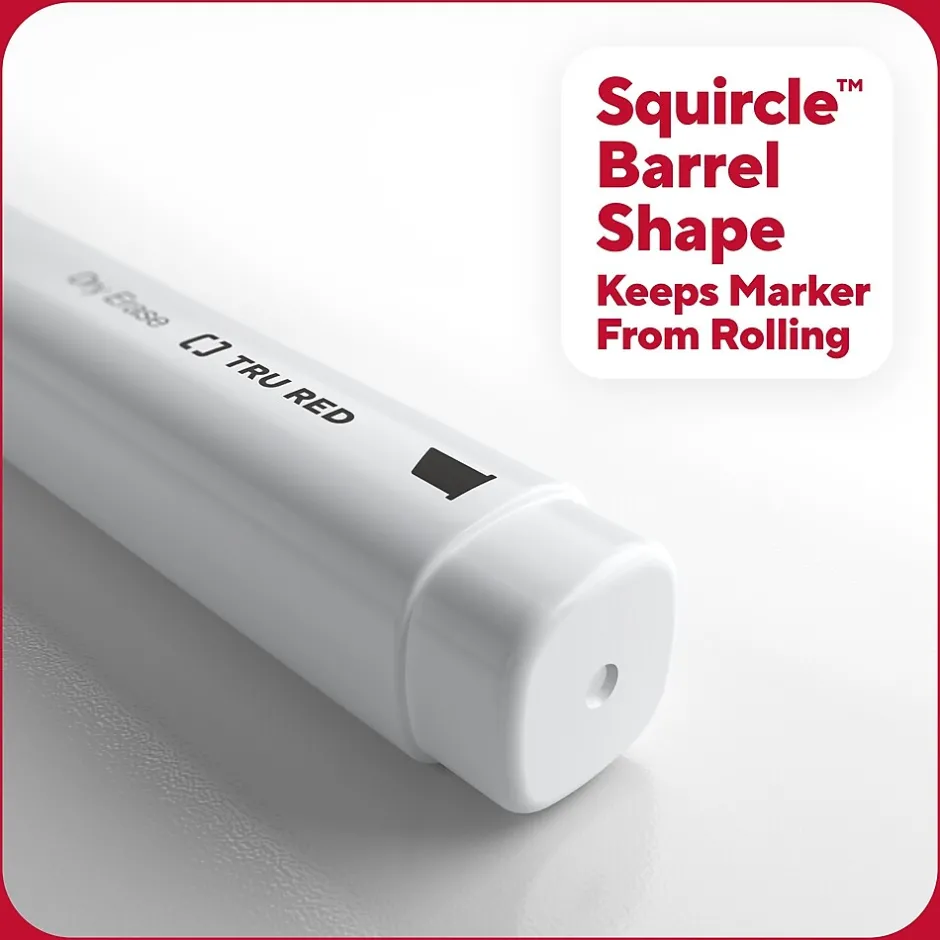 Get teams or students ready to collaborate and learn with this dry erase TRU RED™ Dry Erase Marker 12-pack. The low-odor ink markers feature a chisel-tip for neat writing and a Squircle™ barrel so they won’t roll away. Jot down your big ideas or practice drills in bold, quick-drying black color.