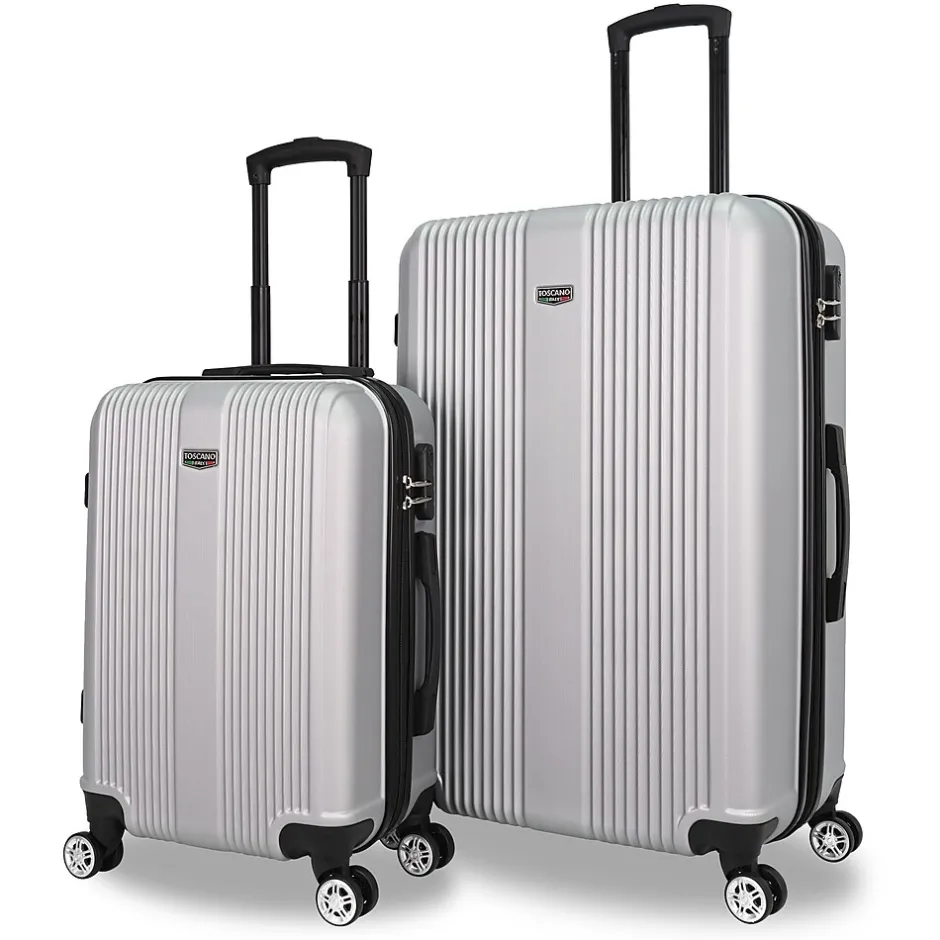 The Toscano Ottimo 2-Piece Luggage Set in Silver (S0536-02PC-SLV) offers a blend of modern style and dependable performance, making it a versatile choice for any traveler. This set includes a sleek carry-on and a spacious checked bag, each featuring a polished silver, scratch-resistant hard shell that combines elegance with durability.Constructed from lightweight yet sturdy materials, the Ottimo set ensures effortless mobility with 360-degree spinner wheels and an ergonomic telescoping handle for smooth handling. The interiors are thoughtfully designed, featuring Toscano’s signature deluxe lining, adjustable straps, and multiple compartments to keep belongings secure and organized. With a 2” expandable feature, this set provides additional packing space when needed, making it suitable for both short getaways and extended trips. The built-in combination lock adds an extra layer of security, while the soft handles offer comfortable grip.