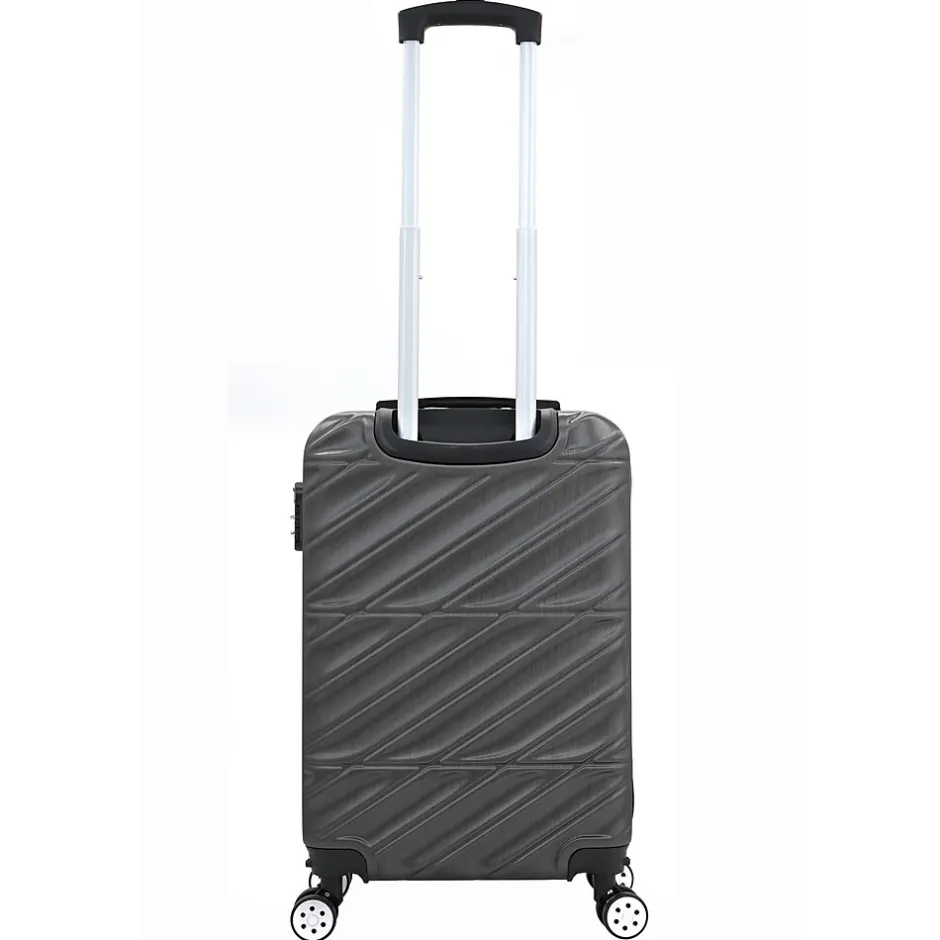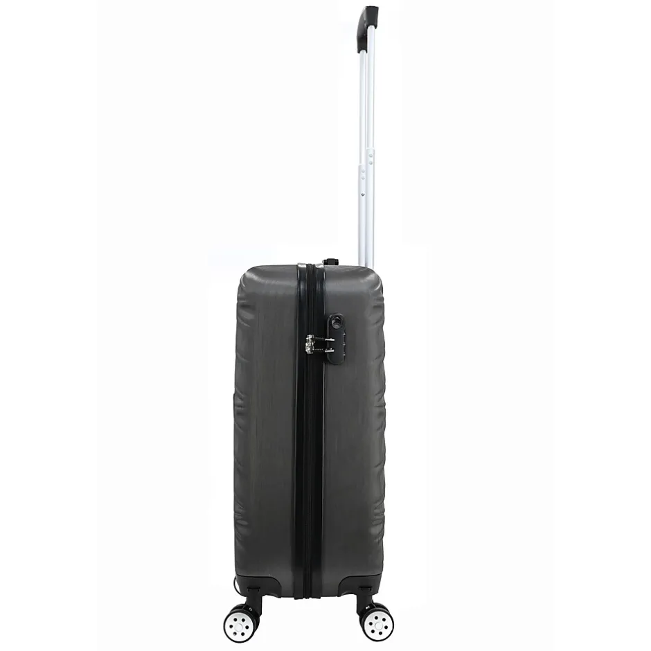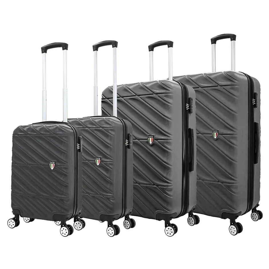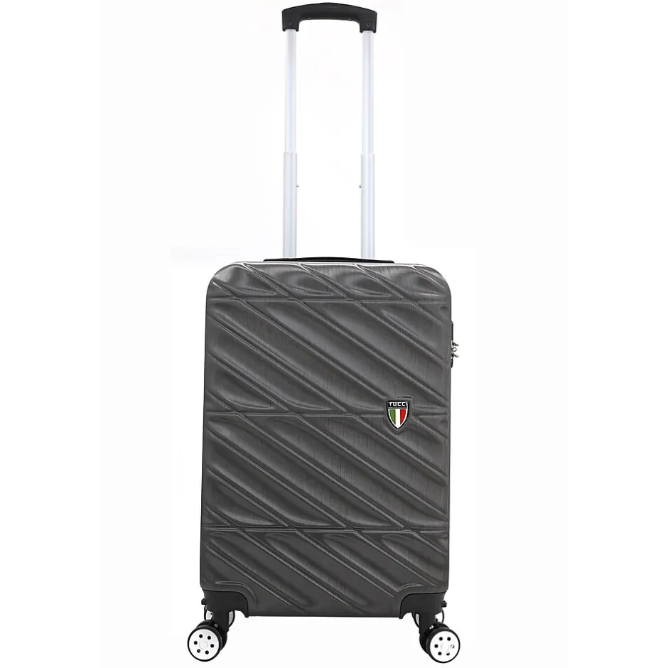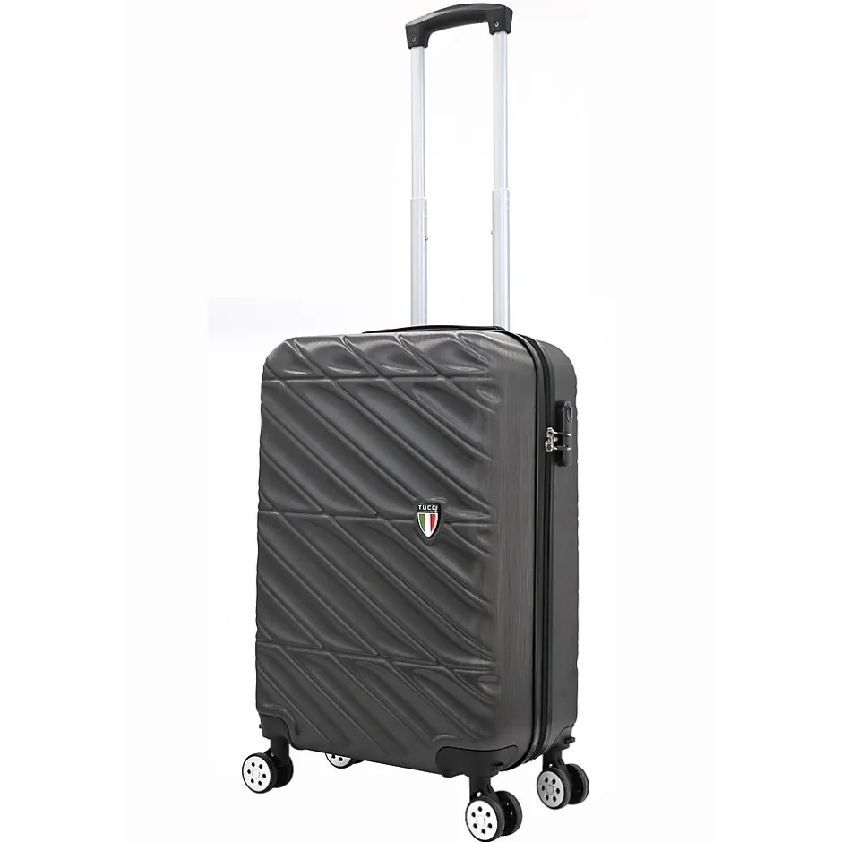 The Tucci Contratto 3-Piece Luggage Set in Charcoal (T0533-04PC-CHL) combines timeless elegance with modern functionality, making it a reliable choice for any journey. This set includes a carry-on, a medium-sized suitcase, and a large checked bag, each featuring a sleek charcoal finish with a scratch-resistant hard shell for enhanced durability.Constructed from lightweight yet sturdy materials, the Contratto set offers easy mobility with 360-degree spinner wheels and an ergonomic telescoping handle, ensuring smooth navigation. The interiors are spacious, featuring Tucci’s signature deluxe lining, adjustable straps, and multiple compartments for organized packing. Each piece also includes a 2” expandable feature, providing up to 35% more packing space when needed. The built-in combination lock adds a layer of security, while the soft jelly handle grips ensure comfortable handling.With its stylish design and practical features, the Tucci Contratto set in Charcoal is perfect for travelers seeking a sophisticated and versatile luggage solution.