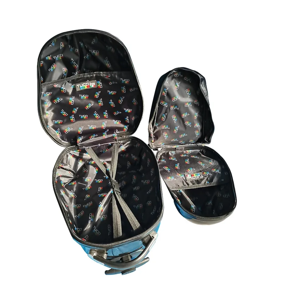 The Tucci Italy Penguin Buddy 2-Piece Kids Luggage Set in Black (T0378) combines fun and functionality, making it an ideal choice for young travelers. This adorable set features a playful penguin design and includes a 16″ suitcase and a 13″ backpack, offering versatility and convenience for every journey. Crafted from durable, scratch-resistant materials, the sleek black finish is both stylish and practical. The suitcase is equipped with 360-degree spinner wheels and a child-friendly telescoping handle for easy maneuvering, while the matching backpack has adjustable straps for a comfortable fit. With spacious interiors and organized compartments, the Penguin Buddy set is perfect for packing clothes, toys, and essentials, making it a delightful travel companion for kids.