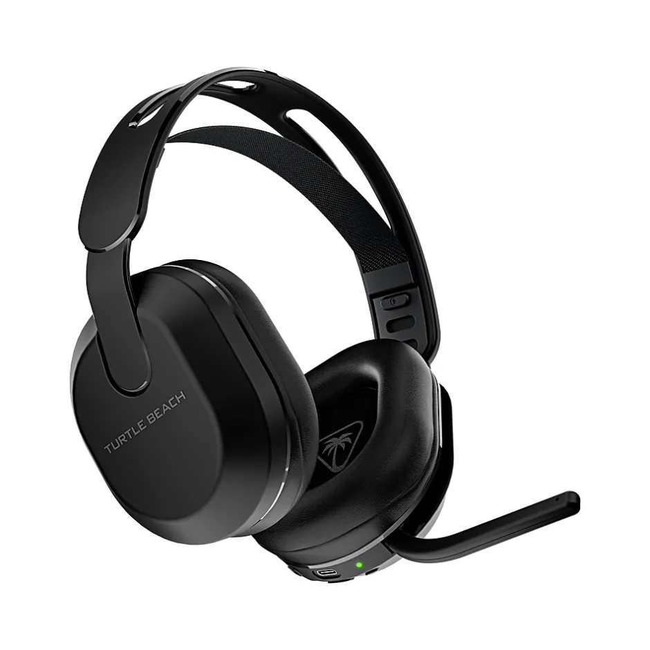 The Turtle Beach® Stealth™ 500 wireless amplified gaming headset for Windows PCs, PS5™ & PS4™, Nintendo Switch™, & Mobile devices redefines what an “entry-level” wireless headset is capable of. Equipped with low-latency, 2.4GHz wireless plus Bluetooth® 5.2 connectivity, the Stealth™ 500 is designed for versatile gaming on console & mobile. Easily toggle back-and-forth between 2.4GHz wireless & Bluetooth® connections using the QuickSwitch button located conveniently on the headset. An ultra-lightweight design with a floating headband eliminates any pressure points for a perfect fit and leatherette-wrapped memory foam ear cushions provide non-stop comfort and enhanced noise isolation. A staggering battery life of up to 40 hours is best in its class, plus it features quick charge so you can get back in the game right away. Precision-tuned 40mm drivers are amplified to deliver renowned Turtle Beach® audio quality, optimized for spatial audio right out of the box. And to dial in your audio quality even further use the Swarm™ II desktop software for PC, or mobile app for iOS & Android devices to adjust EQ settings, activate Superhuman Hearing®, toggle EQ presets and more. Lead your team to victory with ultra-clear voice accuracy thanks to a flip-to-mute omni-directional microphone. Plus, you can activate and adjust variable mic monitoring using the Swarm™ II app so you can hear the level of your own voice to avoid shouting.