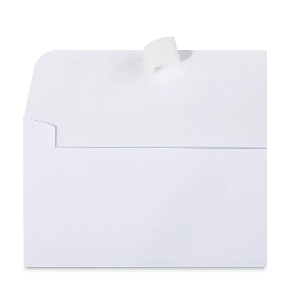 No moisture needed for these envelopes. Simply peel back the strip and fold the flap to close. Peel seal strip feature makes large mailings easier.