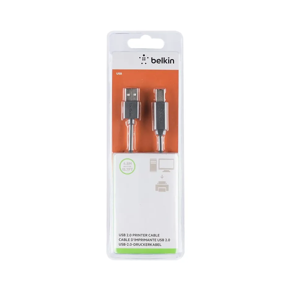 Enjoy fast data transfer speeds with this printer cable. The molded strain-relief cable bends easily without breaking, while the gold-plated contacts prevent corrosion to deliver durability. Ground indents promote a clean fit with connectors, and compatibility with a variety of devices ensures versatility. This Belkin Premium printer cable is 15.7 feet long for reaching printers on shelves and desks.