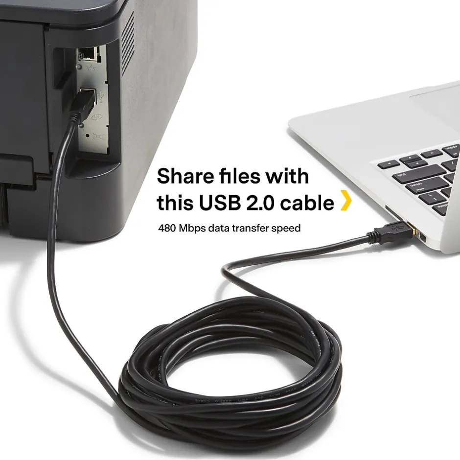 Share files with this USB 2.0 cable. The USB-A and USB-B connectors are compatible with a variety of computers and office equipment, and the 16-foot length offers flexible placement. This NXT Technologies USB 2.0 cable supports speeds as fast as 480Mbps for rapid transfers.