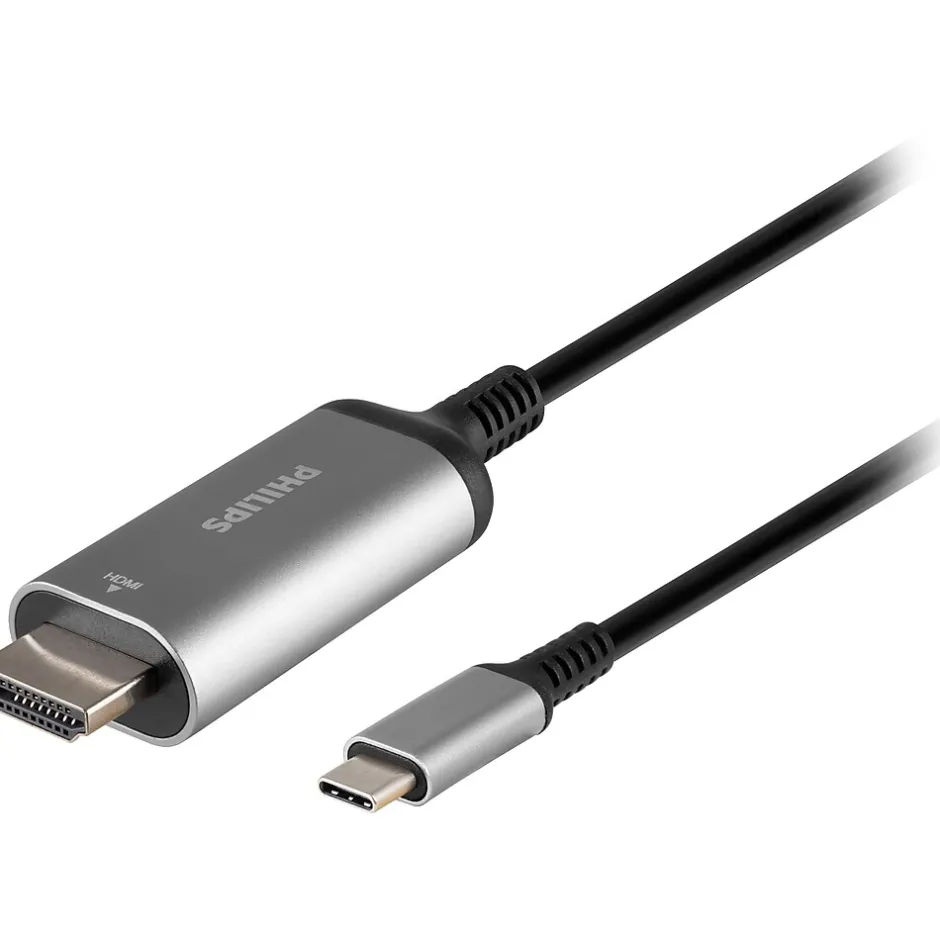 Expand your view with the Philips Elite USB Type-C to HDMI adapter cable. USB Type‑C is quickly becoming the industry standard for both large and small devices such as laptops, tablets, and smartphones, all because of its universal and future-proof design. This USB Type-C to HDMI adapter cable allows you to mirror or stream high-quality content from your video‑enabled USB Type-C computer to any HDMI-equipped display such as your HDTV, projector, or monitor. This adapter cable transfers crystal clear video, so you can enjoy rich images up to 4K Ultra HD that is four times the resolution of traditional 1080p high-definition displays. Bring it with you to display your digital presentation at a business meeting or take it to a friend’s house to share vacation photos or watch a movie. Setup is simple, and the plug-and-play functionality makes installation effortless. In no time at all, you will enjoy viewing your favorite video content from your laptop or other USB Type-C device in a bigger, better way. Make a superior connection to the big screen with the Philips Elite USB Type-C to HDMI adapter cable.