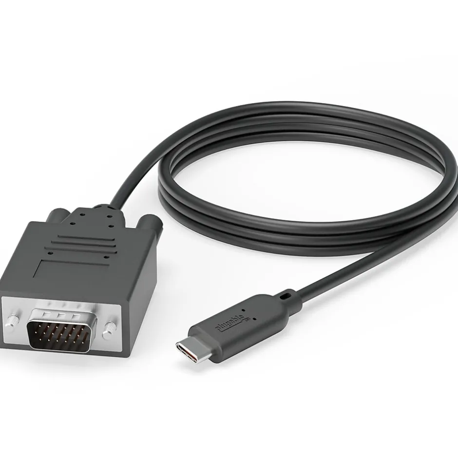The Plugable USBC-VGA-CABLE 6′ video cable in black, is to connect an older VGA equipped monitor. It is compatible with iMac Pro, MacBook 2017, Pro, Pro 13″, Pro 15″, Retina 12″ 2015, Retina 12″ 2016, Dell XPS 13, XPS 15, Chromebook Pixel 2015, ThinkPad P50 and ThinkPad P70. It has 15-pin HD-15 male VGA connector on the first end and USB 3.1 type C male connector on the second end.