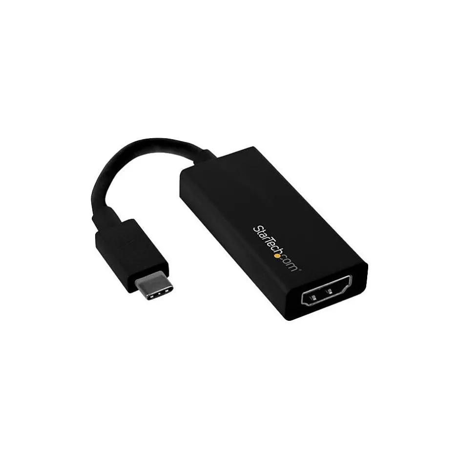The StarTech.com® black USB-C to HDMI adapter supports a USB Type-C™ device such as a MacBook or ChromeBook™ laptop. It is backward compatible with 1080p displays. This cable is great for home, office or other work environments. It is compatible with Thunderbolt™ 3 ports. This cable is perfect for BYOD applications at the office. It supports Ultra HD video resolutions up to 4K. This cable is suitable for use with USB-C devices that pass a DisplayPort video signal.
