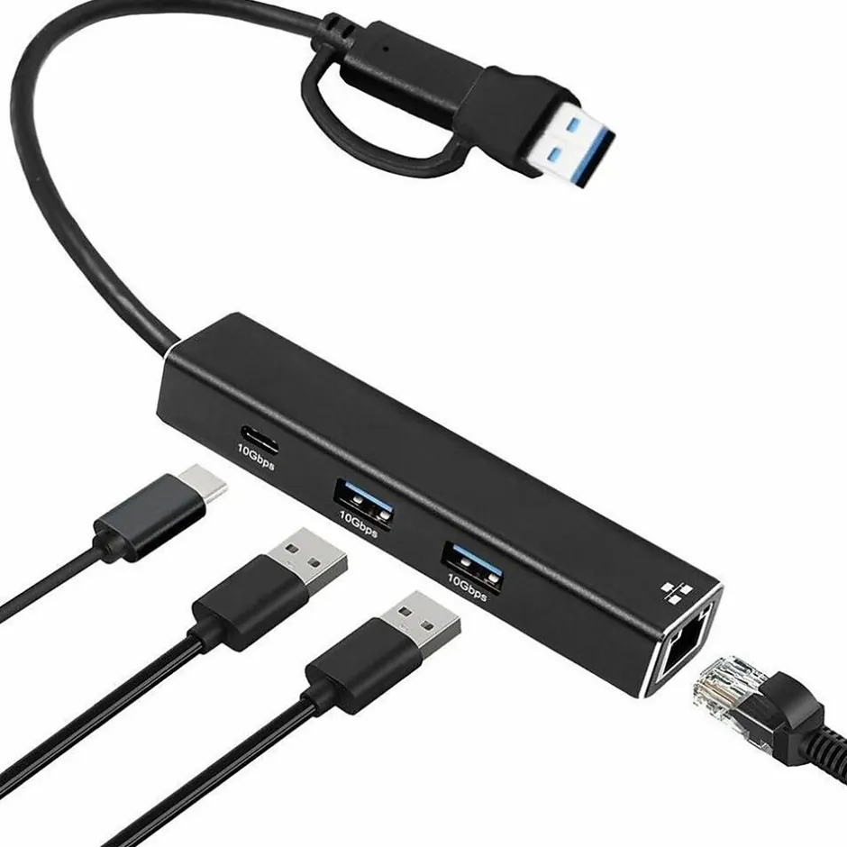 Expand your connectivity options with the 4XEM 3 Port USB-C and A Hub with 2.5Gbps Ethernet – TAA compliant and designed for performance. This versatile hub offers seamless connectivity with two USB 3.2 Type-A ports, one USB Type-C port, and a high-speed 2.5G Ethernet port, ensuring data transfers at lightning-fast speeds of up to 10 Gbps for USB and 2500 Mbps for Ethernet. It features OTG (on-the-go) functionality for USB-C and USB-A hosts, making it highly adaptable to various devices. Bus-powered and compact, this aluminum-built hub delivers reliable performance while remaining lightweight and portable.