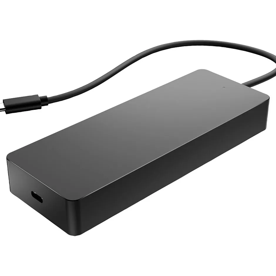 Unlock possibilities with the HP USB Type-C universal multiport hub, now supporting any USB Type-C compatible PC. Seven ports, one power and data pass-through cable, and many peripherals to plug and play however you like. It also supports dual 4K displays via HDMI and one DisplayPort. This hub is all you need to stay connected.