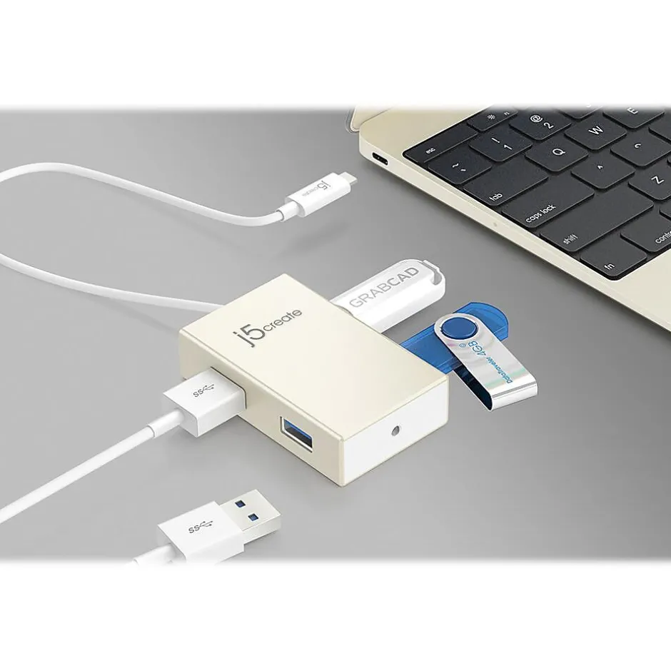 Expand laptop connectivity with this four-port USB hub. Four USB 3.0 Super Speed ports support simultaneous connection for multiple peripherals and provide up to 5 Gbps of data performance for high-speed file transfers with compatible storage devices. This j5create USB Type-C four-port hub is compatible with MacBook, Chromebook and other laptops with USB-C ports and is backward compatible with USB 2.0 connections for versatility.