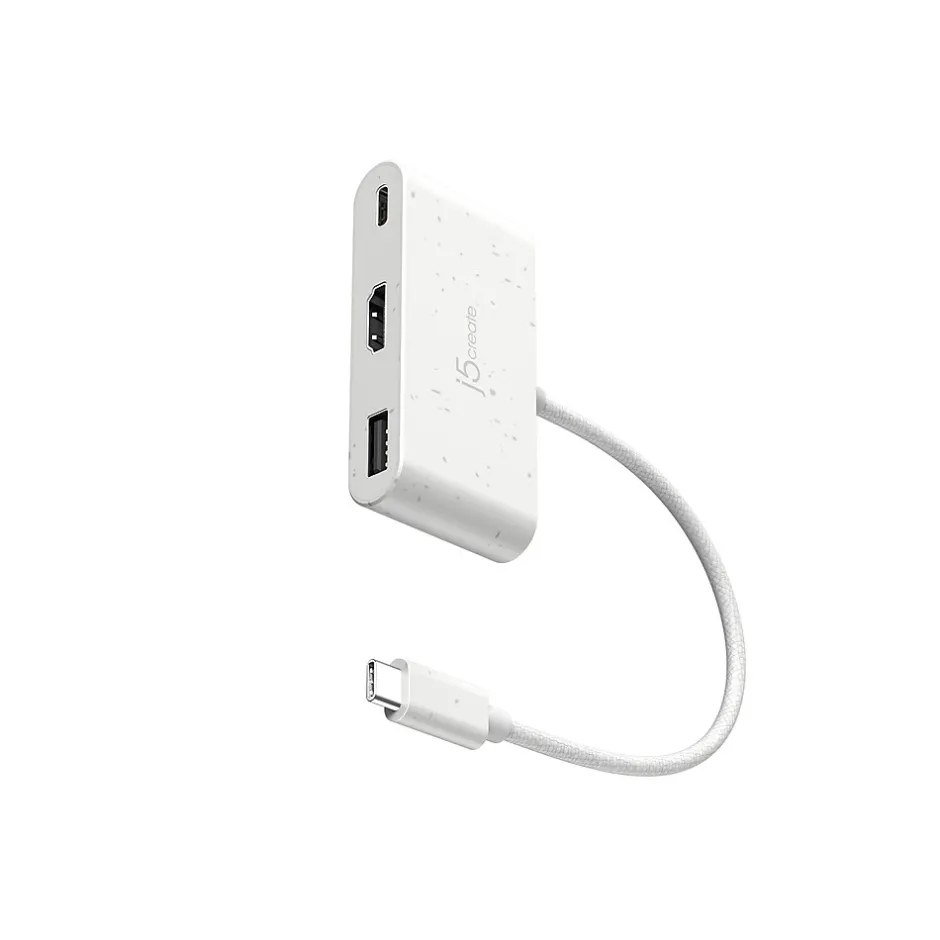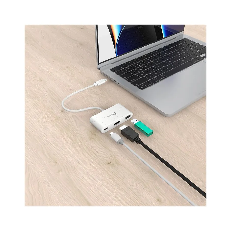 Add extra functionality to your laptop with the j5create Eco-Friendly USB Type-C to HDMI and USB Type-A with Power Delivery hub. This device allows you to add USB Type-A, HDMI, and USB Type-C devices that can be charged through your USB Type-C port. The USB Type-A SuperSpeed port gives you data transfer rates up to 5Gbps. The HDMI port supports resolutions up to 4K. Equipped with a USB Type-C Power Delivery 3.0 charging port, the hub offers charging up to 100W when connected to a USB Type-C power adapter.