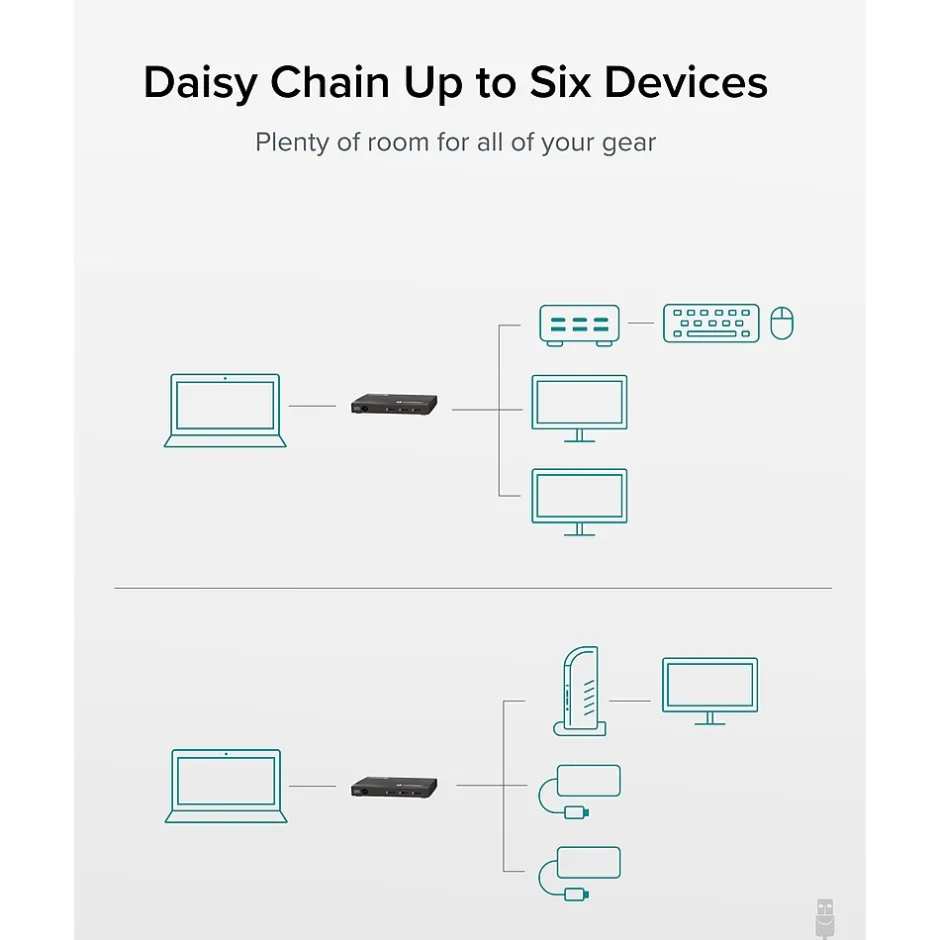 - Daisy-chain up to six devices to make room for all of your gear, or use a stand-alone USB charging hub for any USB Type-C/Thunderbolt device