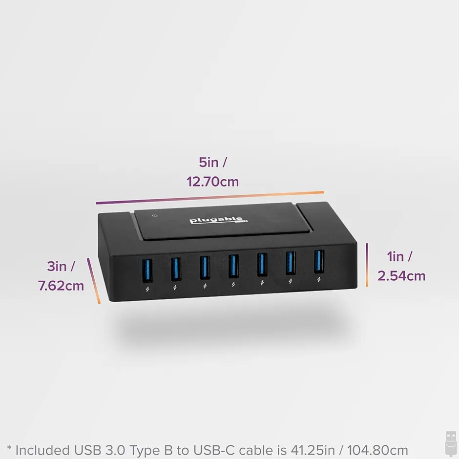 Plugable 7-in-1 USB Charging Hub with Data Transfer for Laptops with USB-C or USB 3.0 – Multiport Charging and USB Data Transfer – 60W Power Adapter