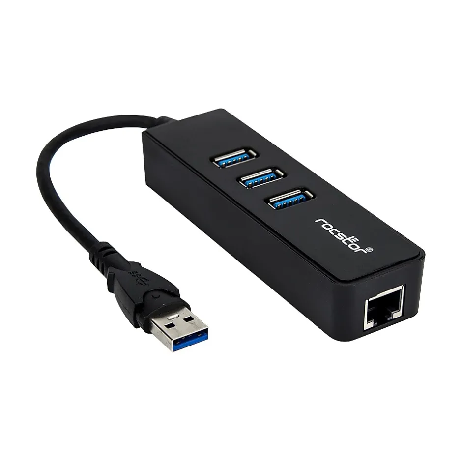 Use the Rocstor reliable premium portable external hub to expand your USB 3.0 ports and connect to any network with its built-in GbE 10/100/1000 port. This Rocstor Hub is compatible with any Mac or PC and adds three USB 3.0 (5Gbps) ports and one Gigabit Ethernet (GbE) port to your host computer such as MacBook (with Type-A Connection), Dell notebooks, and any other host computer with USB 3.0 port. This device is essential for users with limited port availability. This Rocstor Hub is light weight and perfect for travel usage. Use your Rocstor premium cable Worry free which is backed by 2 Year Limited Warranty.