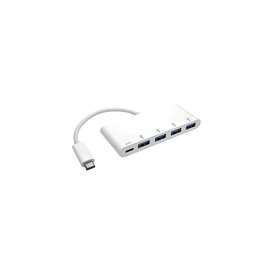 The Tripp Lite USB-C to 4 x USB-A 4-port USB 3.1 Gen 1 portable hub transfers data at the rate of 5 Gb/s. It has USB-C male connector on the first end and four USB 3.0-A female connector on the second end. One port of the hub supports USB battery charging specification v1.2, providing up to 1.5 A for fast charging of mobile devices. This hub is ideal for flash drives, external hard drives, DVD drives, MP3 players and digital cameras and is backward compatible with previous USB generations. This compact hub is perfect for travel.