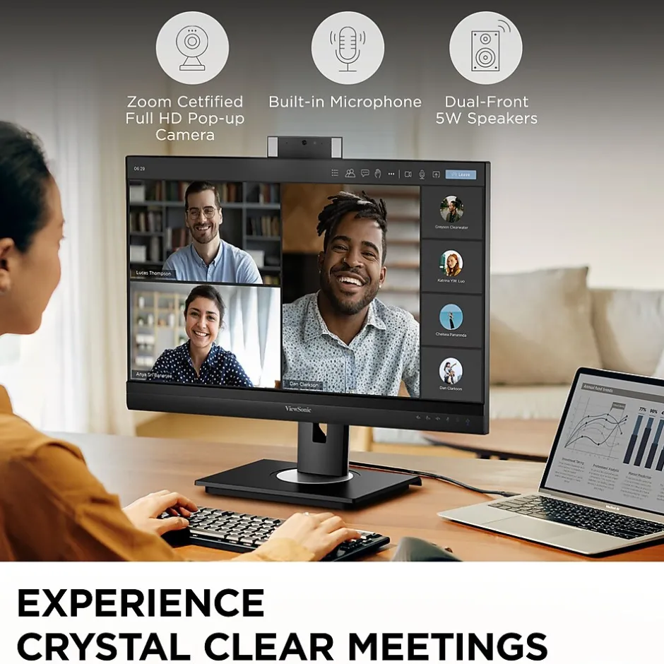 - VIDEO CONFERENCING MONITOR: Built-in microphone, front-firing 5W speakers, and a 1080p camera.