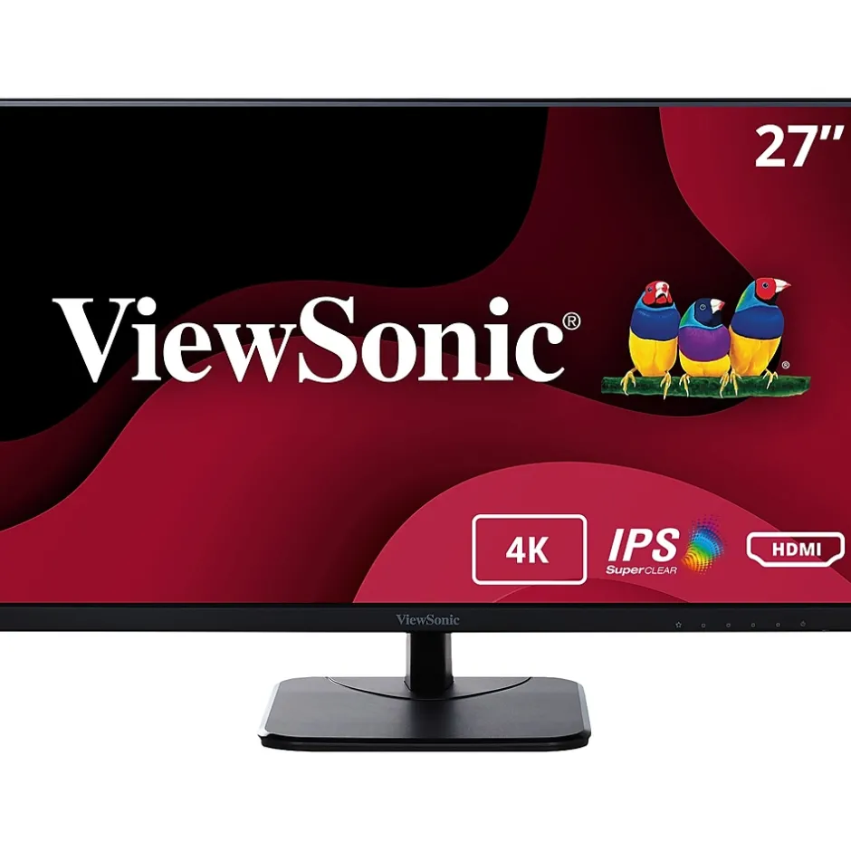 Featuring enhanced wide-angle viewing, stunning resolution and flexible connectivity options, the ViewSonic VA2756-4k-MHD monitor is a great addition to any workspace. This 27” VA2756-4k-MHD monitor comes with SuperClear IPS panel technology so you can experience stunning brightness and contrast at nearly any viewing angle. Featuring 3840 x 2160 resolution and a frameless design, this monitor provides a near-seamless viewing experience ideal for multi-monitor setups. Connect laptops, PCs, gaming consoles and other multimedia devices with HDMI or DisplayPort connectivity. And with powerful features like flicker-free technology and a blue light filter, you can work for longer with less strain. Enjoy a 3 year limited warranty, industry-leading pixel performance policy and so much more with the ViewSonic VA2756-4k-MHD monitor.