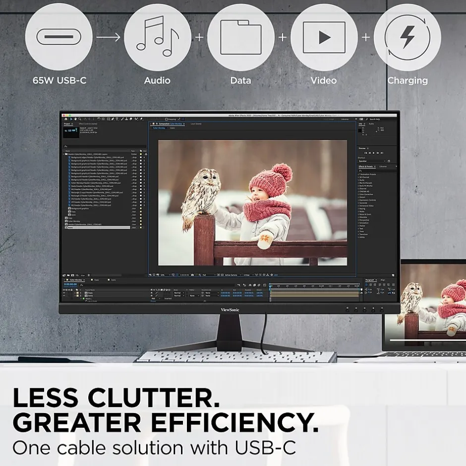 - LESS CABLE CLUTTER: USB-C connectivity for fast data, audio and video transfer, and 65W charging over one cable