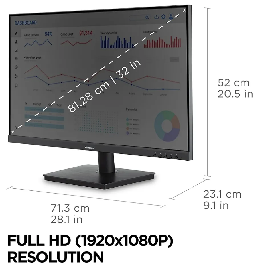 Featuring an expansive 32” (31.5” viewable) display with SuperClear IPS panel technology, this immersive monitor delivers stunning brightness and contrast at almost any viewing angle. With a minimalist edge-to-edge screen and a three-sided frameless bezel, creating a seamless multi-monitor setup has never been easier. Connect laptops, PCs, gaming consoles and other multimedia devices to this 32″ monitor via HDMI or VGA. And with state-of-the-art features like flicker-free technology and a blue light filter, you can work or play for longer with less eye strain. Enjoy a three-year limited warranty and an industry-leading pixel performance guarantee with the ViewSonic VA3209M Full HD 1080p monitor.