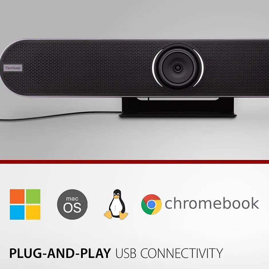 The ViewSonic® VB-CAM-201 is a 4K video conferencing camera perfect for medium to large-sized conference rooms and boardrooms. With 4K Ultra HD resolution and a 120° super wide-angle lens, the VB-CAM-201 captures everyone in a meeting room with stunning clarity. Voice-tracking technology, combined with 5x digital zoom, ensures that the speaker is always on camera. In addition, an 8W speaker and a four-microphone array with noise and echo cancellation technologies ensure that everyone on your call feels as if they are in the room with you. Plug-and-play connectivity with ViewSonic ViewBoard® interactive displays and commercial displays make setup quick and easy.