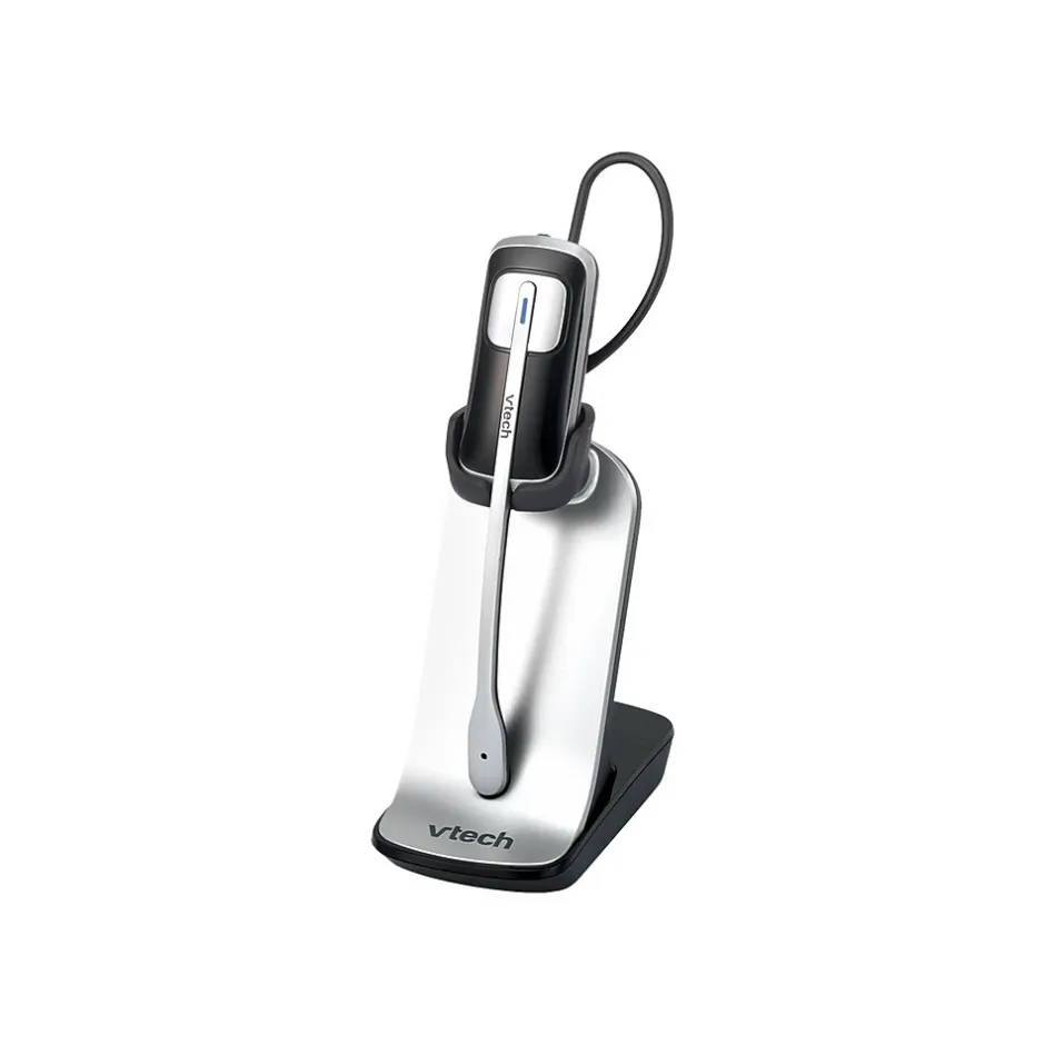 Activate virtual assistants with one touch by using this cordless headset. Featuring DECT 6.0 digital technology, this cordless headset delivers impressively clear audio and boasts an operating range of up to 500 feet. Convenient on-ear controls let you answer calls, mute audio and access virtual assistants. Five volume levels allow you to raise or lower noise levels, while integrated sound level protection blocks transmission of harmful sounds. This VTech cordless headset offers multiple wearing styles for maximum comfort.