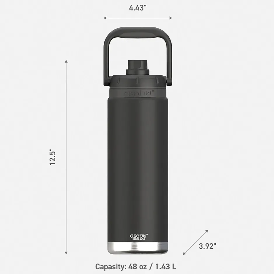 Stay hydrated on your next adventure with the ASOBU Canyon Bottle in Black! Even with its large 50-oz. capacity, the Canyon Bottle is easy to carry, thanks to its comfort-grip handle with soft-touch insert. And you don’t have to turn it upside down to drink because it features a built-in pop-up straw! The silicone rubber nonslip base keeps the bottle from sliding (and from making a racket when you put it down). ASOBU has thought of every possible feature to make your life easier — and they’ve put it in this bottle.