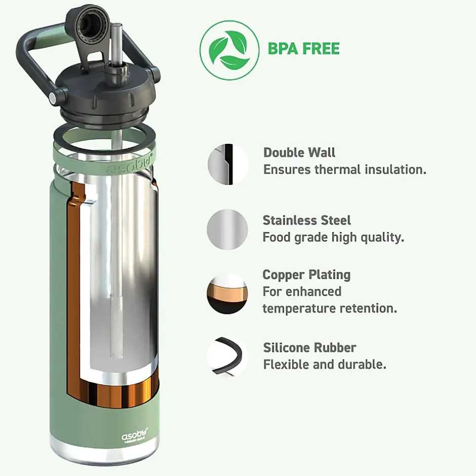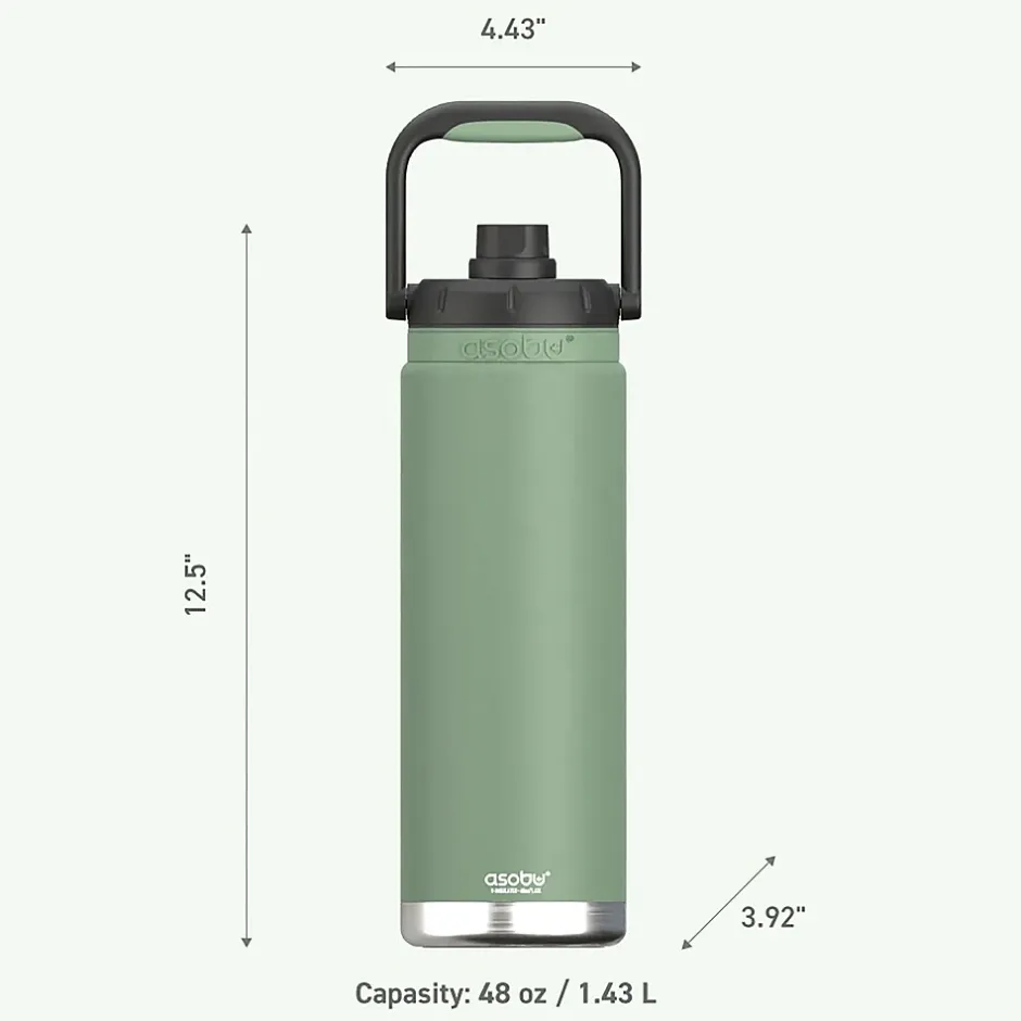 Stay hydrated on your next adventure with the ASOBU Canyon Bottle in Green! Even with its large 50-oz. capacity, the Canyon Bottle is easy to carry, thanks to its comfort-grip handle with soft-touch insert. And you don’t have to turn it upside down to drink because it features a built-in pop-up straw! The silicone rubber nonslip base keeps the bottle from sliding (and from making a racket when you put it down). ASOBU has thought of every possible feature to make your life easier — and they’ve put it in this bottle!