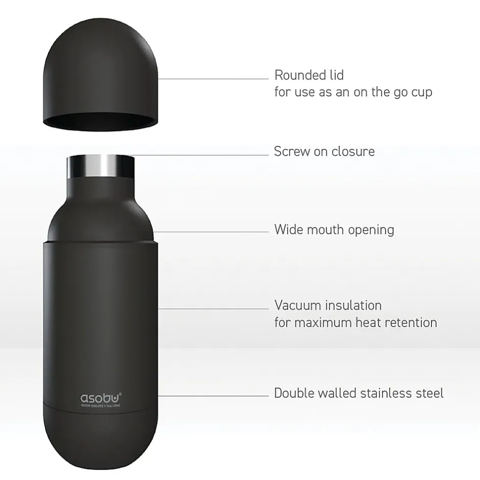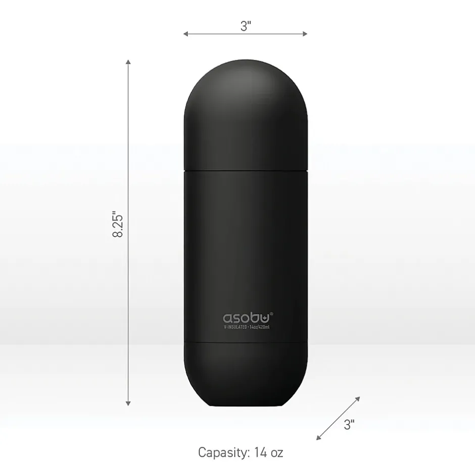 The ASOBU Silver 14-Oz. Orb Water Bottle is made of double-wall, vacuum-insulated, copper-lined stainless steel construction so it will keep your drinks hot or cold for hours. The ergonomic easy-grip shape makes it an ideal travel companion. And its stunning look sets you apart from the crowd of standard insulated bottles on the market today. The Orb bottle comes with a soft-touch exterior while the lid can be used as a handy cup for serving a small portion when preferred. Make a unique fashion statement today and the next time you are out and about during your busy day or evening with the Orb water bottle.