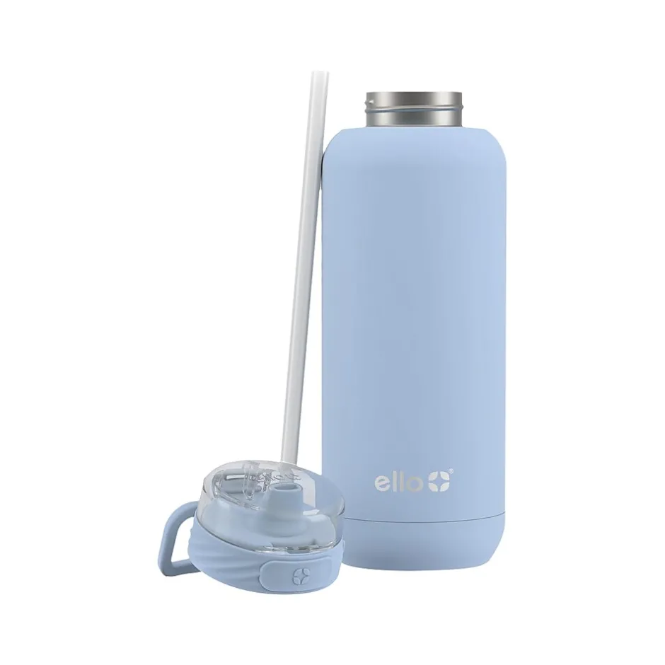 The ello Cooper 32 oz. vacuum-insulated stainless steel water bottle features an FDA food-grade silicone straw infused with Guardian that keeps the drink surface clean. A locking, leakproof flip lid with a built-in carry loop keeps the drink surface fully covered during transport. Just push the soft-touch band to flip the lid open with one hand. Cooper keeps drinks cold up to 24 hours and features 18/8 stainless steel with an ultradurable powder coat finish that won’t chip or rust.