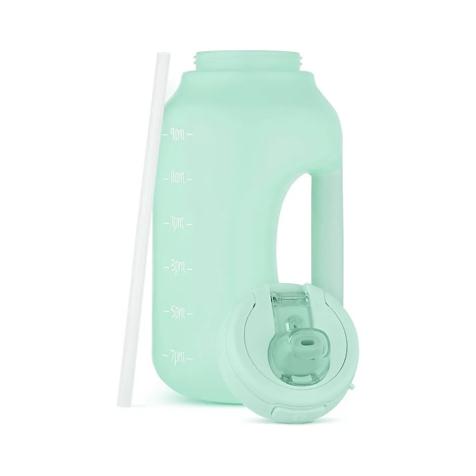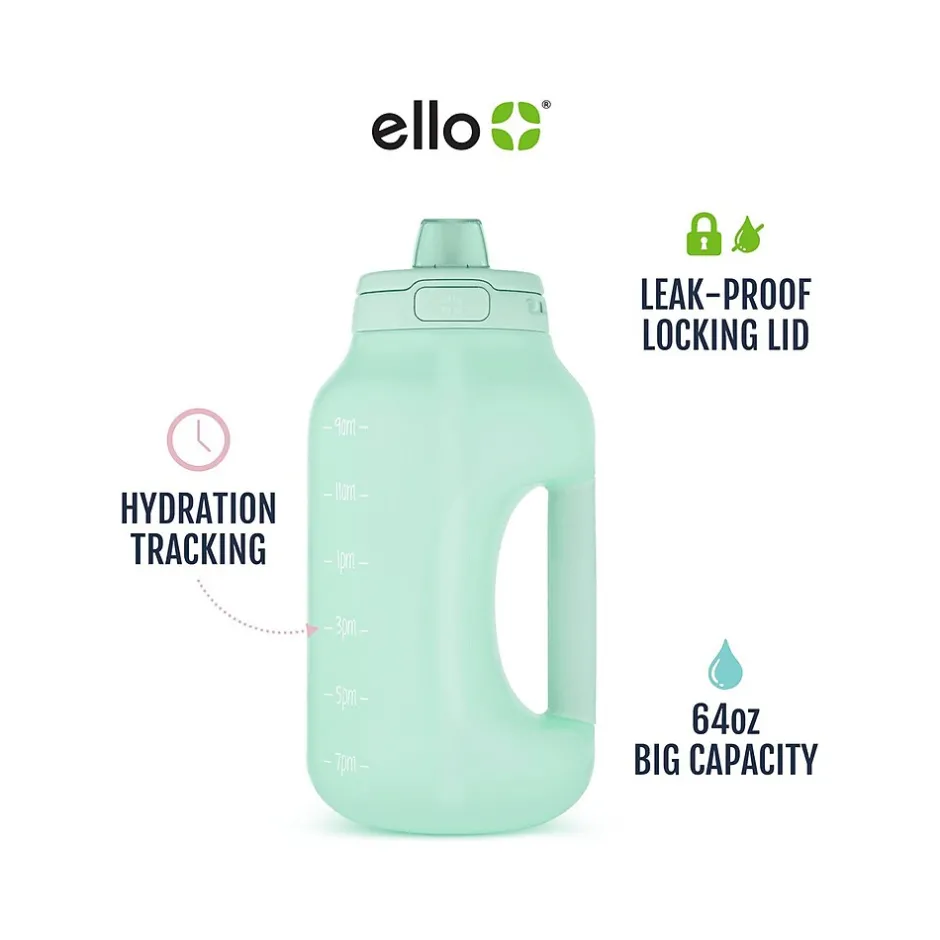 The ello Hydra water bottle with straw includes time markings to remind you when it’s time to drink water throughout the day. The one-touch flip lid keeps the drink surface covered and clean, while the extra-wide opening allows for easy filling, adding ice, and cleaning. Choose between the integrated carry loop or soft-touch handle on the side for easy grab-and-go.
