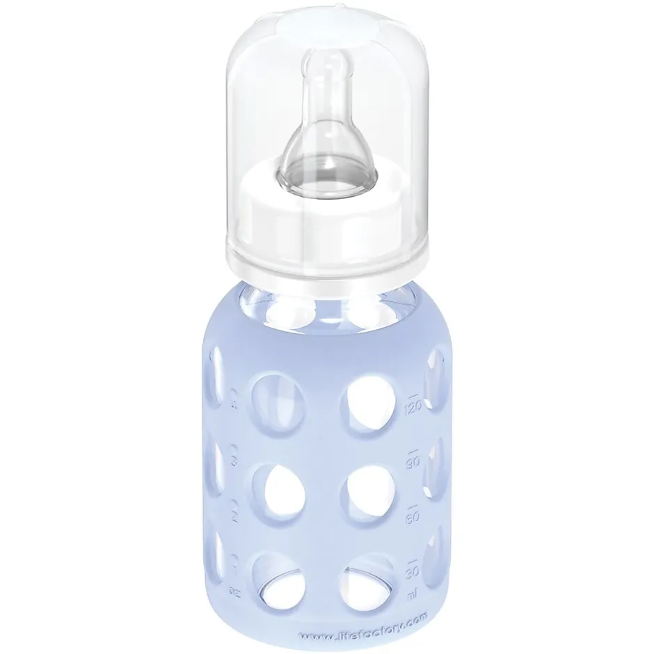 The Lifefactory Mint/Blanket/Blueberry/Kale 4-Glass Baby Bottle Starter Set makes for a beautiful gift for new and expectant moms. They’re ideal for baby showers and they’re easy to wrap. It’s a great way to ensure baby gets off to a healthy start. These baby bottles are made of the highest quality, thermal shock-resistant borosilicate glass. This allows these bottles to transition safely from freezer to boiling water. The 4-Bottle Starter Set includes: two 4 oz. glass baby bottles, two 9 oz. glass baby bottles, 2 flat caps, 2 sippy caps, and 2 silicone nipples. The 4 oz. bottles come with Stage 1 nipples, and the 9 oz. bottles come with Stage 2 nipples.