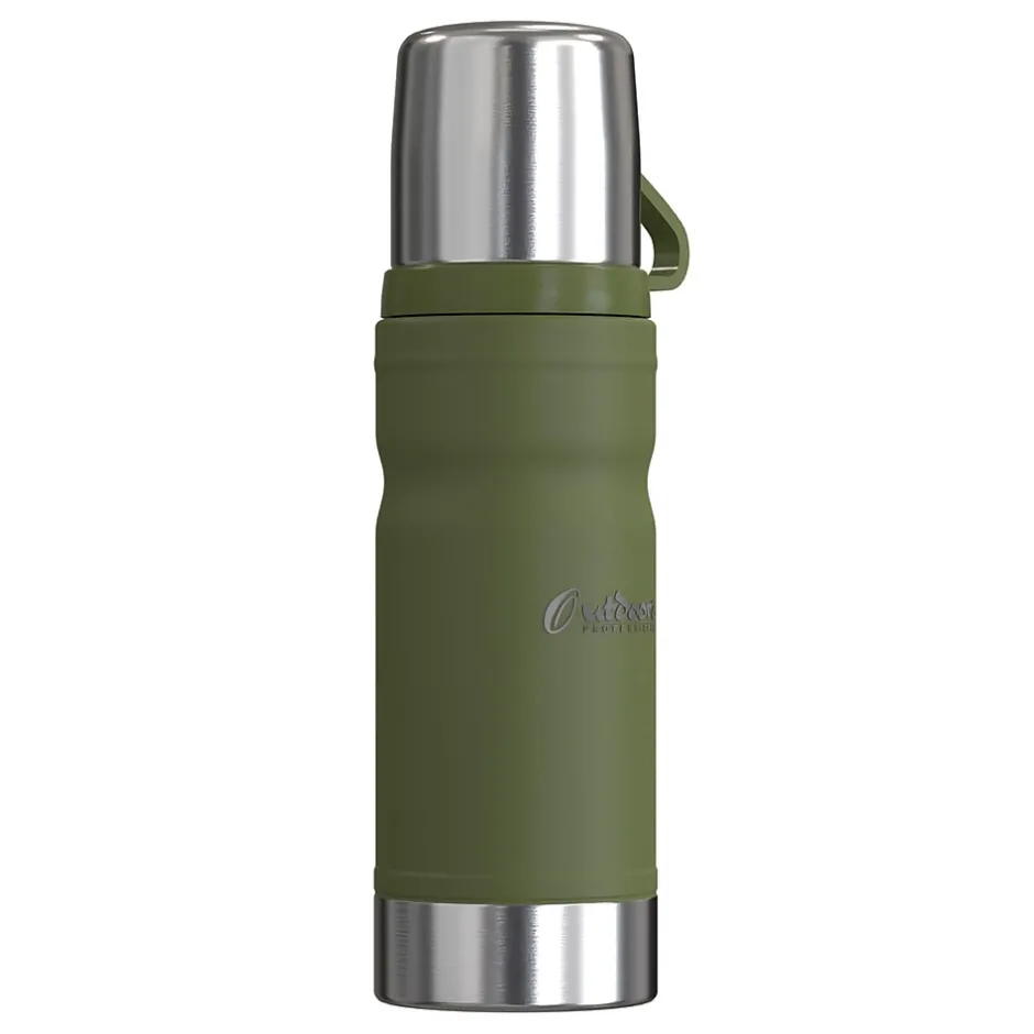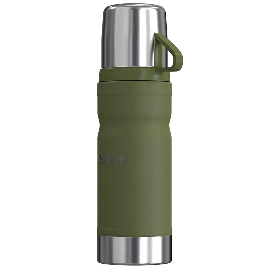 The Outdoors Professional Green Termo Classic Vacuum Bottle is made with superior insulation that keeps liquids (soup, coffee, tea) hot for up to 24 hours or cold drinks cool for up to 24 hours. Add ice to your favorite beverage and the Termo classic will keep it cold for up to 5 days. The rustproof stainless steel construction means it can work just as hard as you do without impacting its performance. This is an ideal bottle to throw in your truck, work bag, or travel with it. It’s made with BPA-free materials, keeping its contents safe to consume. This bottle features a leak-resistant lid, so you can put it in your backpack without worrying about any spills. The wide mouth opening helps with easy pouring into the lid that doubles as a cup. The collapsible handle makes it easy to transport when you’re on the go.